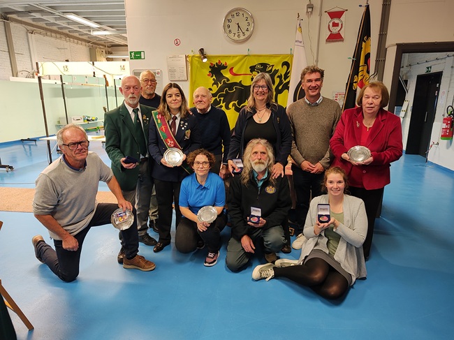 Schepen Vansina had ons toegezegd om te komen zien maar andere verplichtingen verhinderden dit. Schepen van Sport was wel aanwezig en nam de prijsuitreiking voor zijn rekening. Ook was hij zeer nieuwsgierig naar het verloop van de schieting en over de wapens, een nieuwe wereld ging voor de Schepen open.
