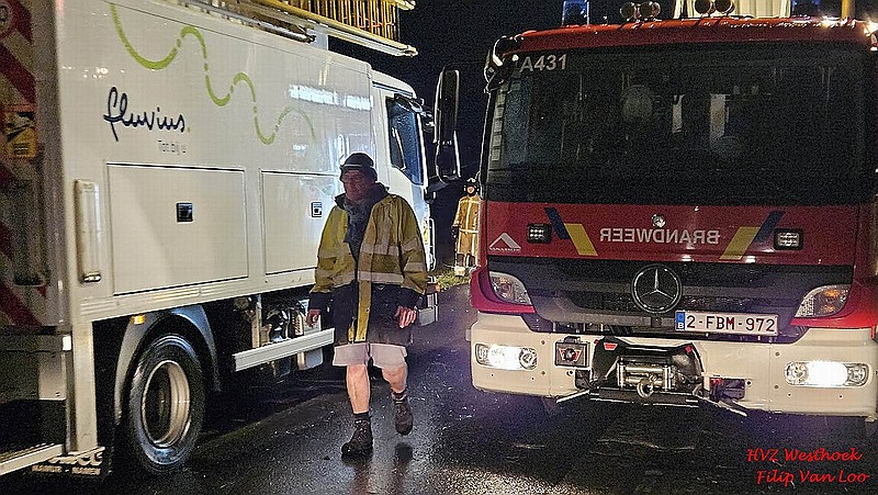 Fluvius kwam ter eveneens ter plaatse om de schade aan elektriciteitskabels te herstellen. Na de takelwerken moest de brandweer het wegdek nog terug proper maken.