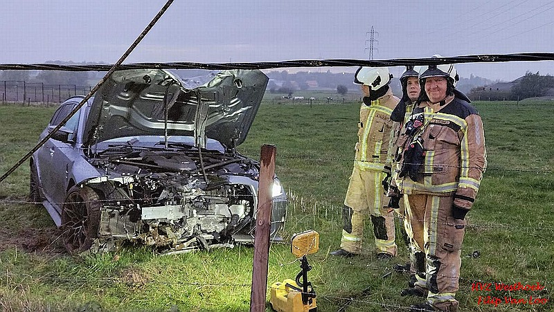 Een bestuurder van een BMW was daar van de weg geraakt en eerst in de gracht terechtgekomen waarna de wagen tegen een elektriciteitspaal boste, die afknakte, om vervolgens door de omheining van de weide even verder in de weide tot stilstand te komen. De bestuurder werd licht gewond overgebracht naar het ziekenhuis.