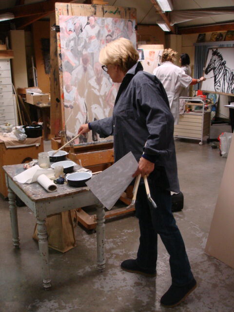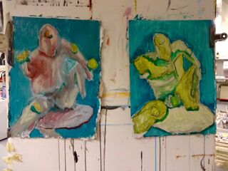 En de 5 terugkerende kleuren op de werken van mijn leerlingen HG, atelier Schilderkunst...