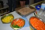 *Avondeten Na het verfrissen was iedereen paraat om zijn steentje bij te dragen voor het maken van het avondeten: groentjes snijden, tafel dekken, gehakt bakken,... Om uiteindelijk heerlijke spaghetti te eten met een leuke babbel en een muziekje op de achtergrond. Na het eten was iedereen verdeeld in groepen om de afwas te doen, waarbij de rest eventjes vrij was.