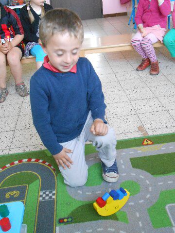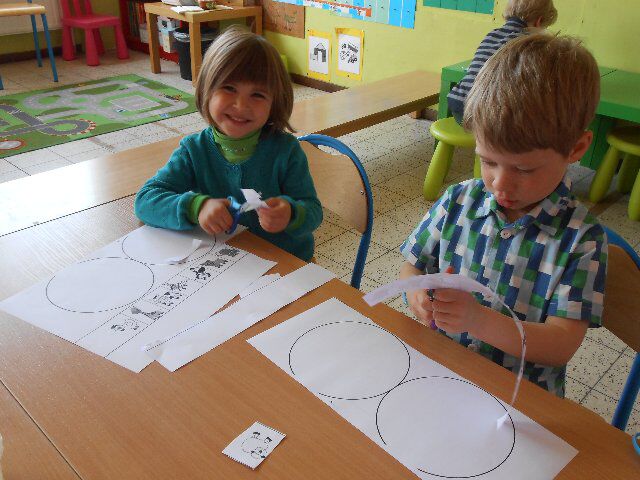 We hebben tractors gemaakt met dozen en moesten dieren sorteren in twee cirkels. 1 cirkel voor de boerderijdieren en een andere cirkel voor de dieren van de dierentuin.