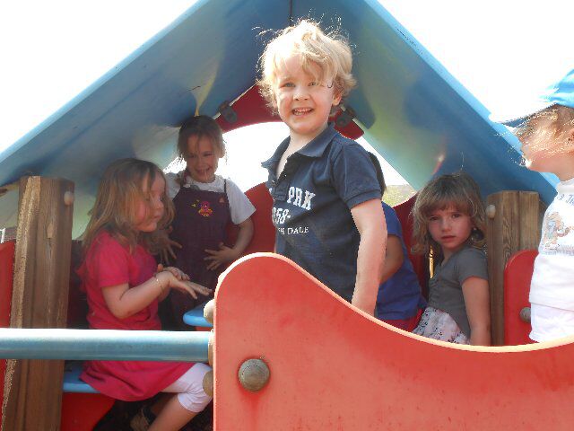 Genieten van het zonnetje en spelen op de speelweide!
