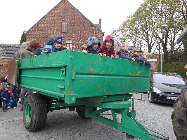 We gingen met de tractor en de kar naar een echte boerderij!