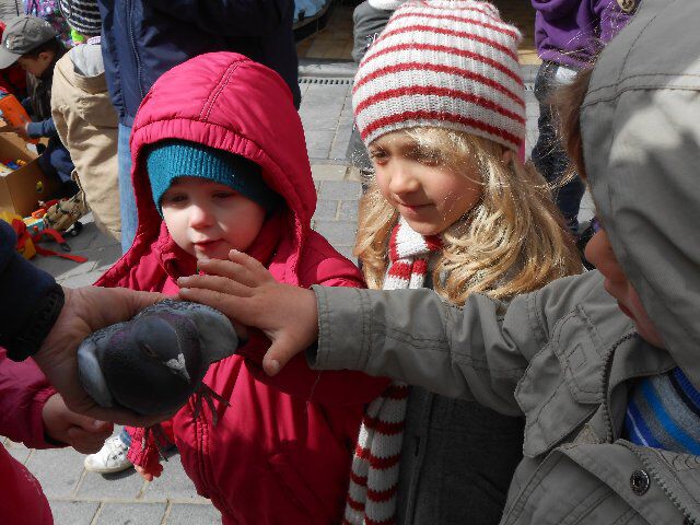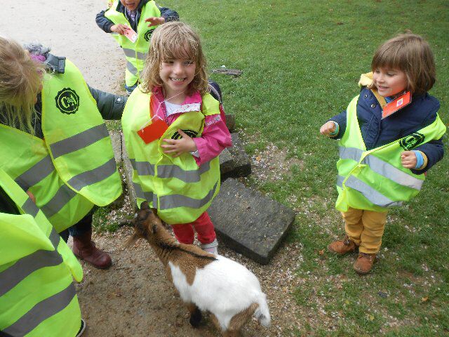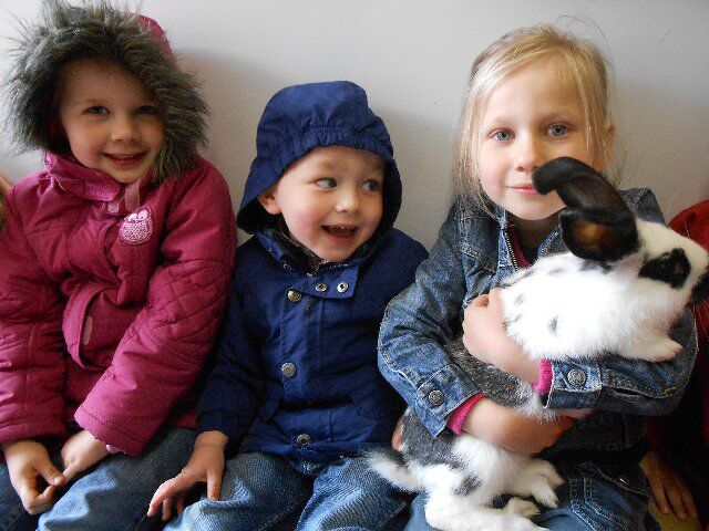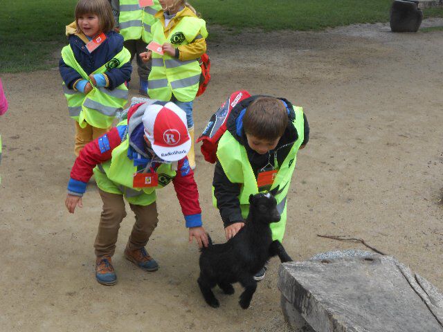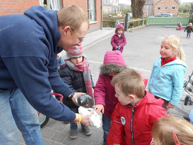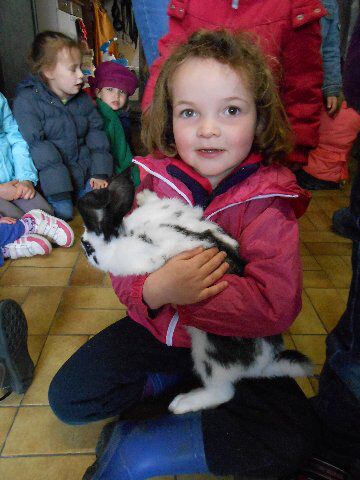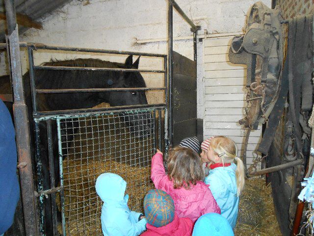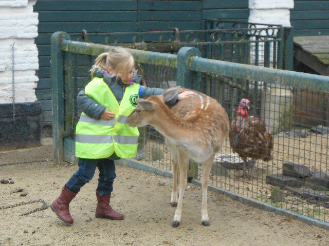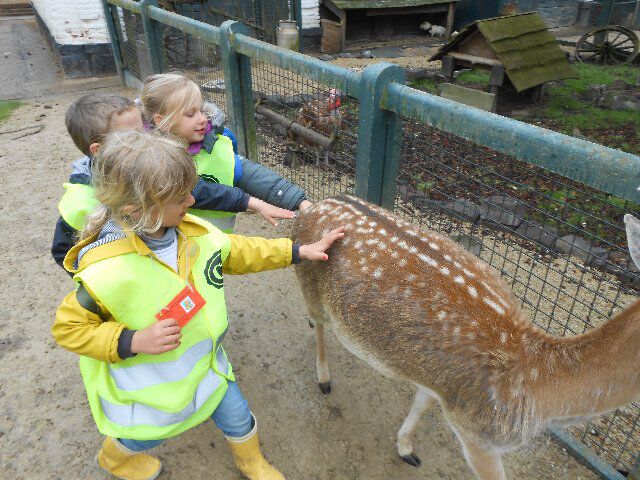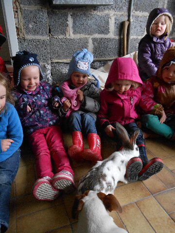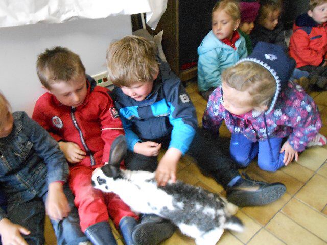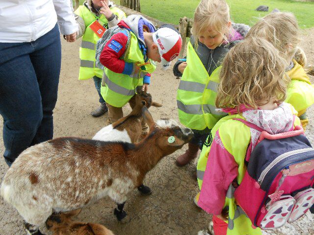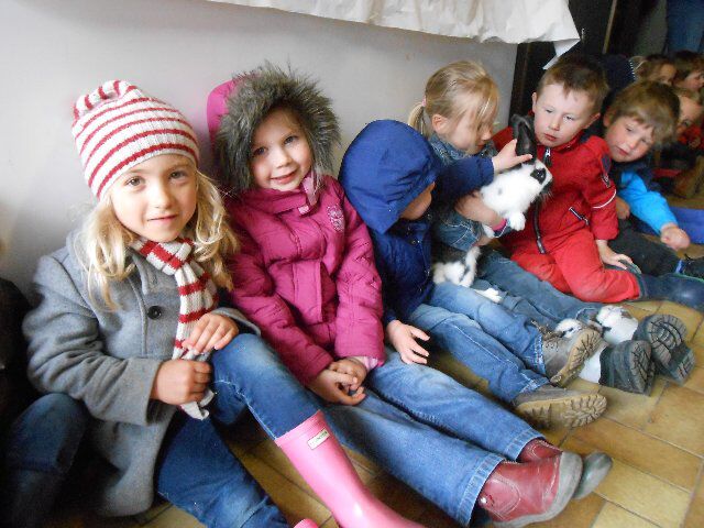 We zagen er konijnen, koeien en kalfjes en 1 hele grote stier, kippen, schapen en lammetjes, eenden, paarden, honden en duiven!