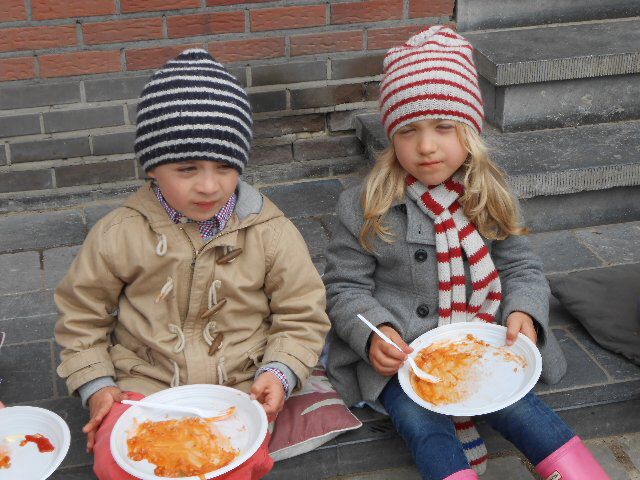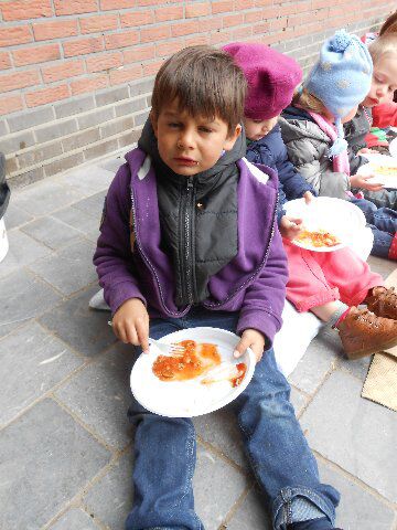 Daarna gingen we naar het restaurant waar we appelmoes met hamburgers en aardappeltjes aten. We kregen er ook lekkere fruitsla en een ijsje. Mmmmmmmmmmmmmmmmmm!! Het was weeral een superleuke dag!