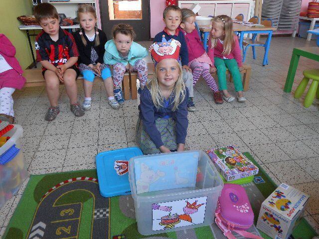 Vandaag was onze lieve Iluna jarig! Ze bracht mooie puzzels en leuke spelletjes mee in de verjaardagsdoos. En ook een heel mooi boekje "Net zoals jij". Er was ook lekkere cake!! Bedankt mama en papa!!
