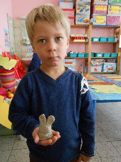 We maakten hokjes voor diertjes die we mochten boetseren in natuurklei!