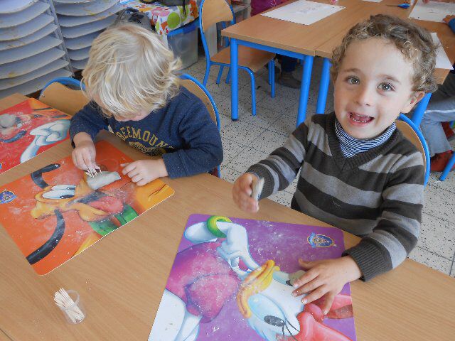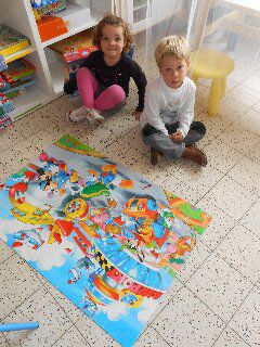 We mochten kettingen rijgen met kralen van dieren en Kobe en Elena maakten samen een vloerpuzzel van 40 stukken!
