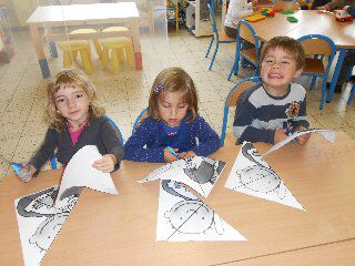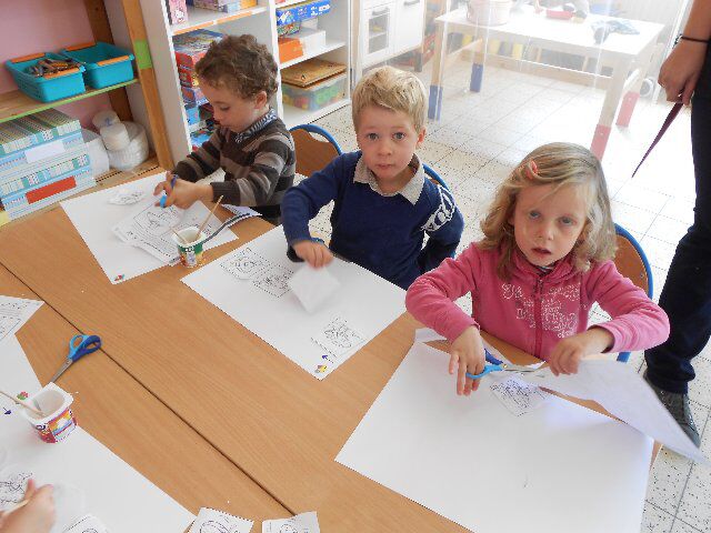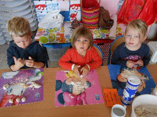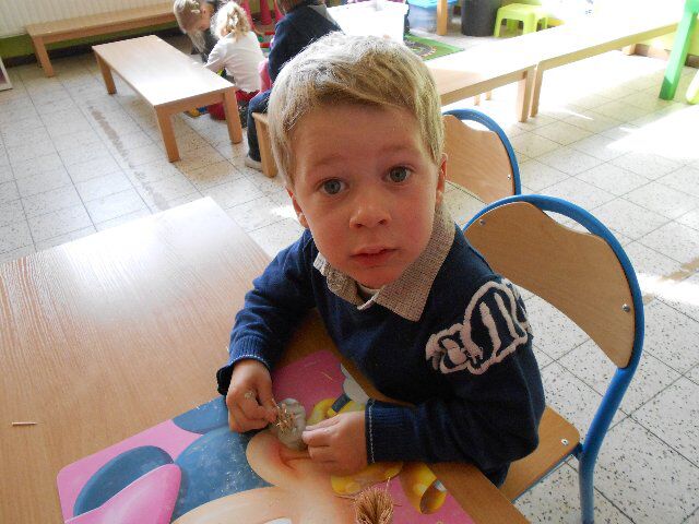 Dinsdag gingen we turnen bij juf Els en maakten we egeltjes met de klei. We deden ook een spelletje met prenten bij het liedje "op een grote paddestoel". De kleuters moesten de prentjes uitknippen en in de juiste volgorde terug opplakken.