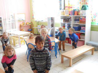 Omdat bewegen, net zoals fruit eten, ook supergezond is hebben we in ons klasje ook gedanst op "de regendans" van kabouter Plop.