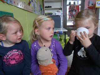 Tijdens ons thema van de dieren brachten Iluna en Jan hun huisdier mee naar ons klasje! Iluna bracht haar konijn Boris mee en Jan zijn papegaai Jacky! Heel leuk!! We mochten het konijntje natuurlijk een keer aaien: het was een heel zacht beestje met lange witte haren. En de papegaai mochten we stukjes appel geven: die kon hij dan zelf in zijn pootjes nemen en dan stukje voor stukje opeten. Heel grappig was dat!