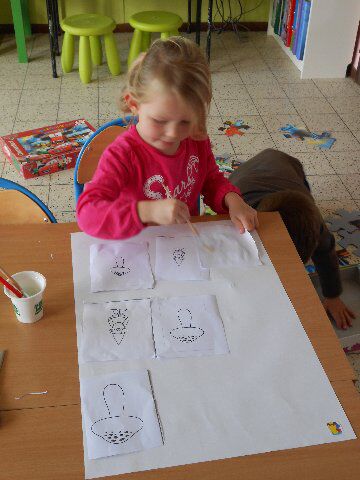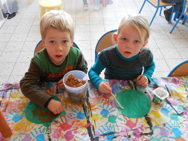 Iluna en Quinn maakten samen een puzzel van 48 stukken! We mochten ook peren schilderen aan de hand van een versje: Meneertje Peertje is zo wit, ik schilder geel, ik schilder groen, vouwen, wrijven, peertje opendoen!