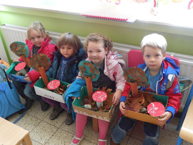 We maakten paddestoelen en bomen om in onze herfstdoos te zetten.