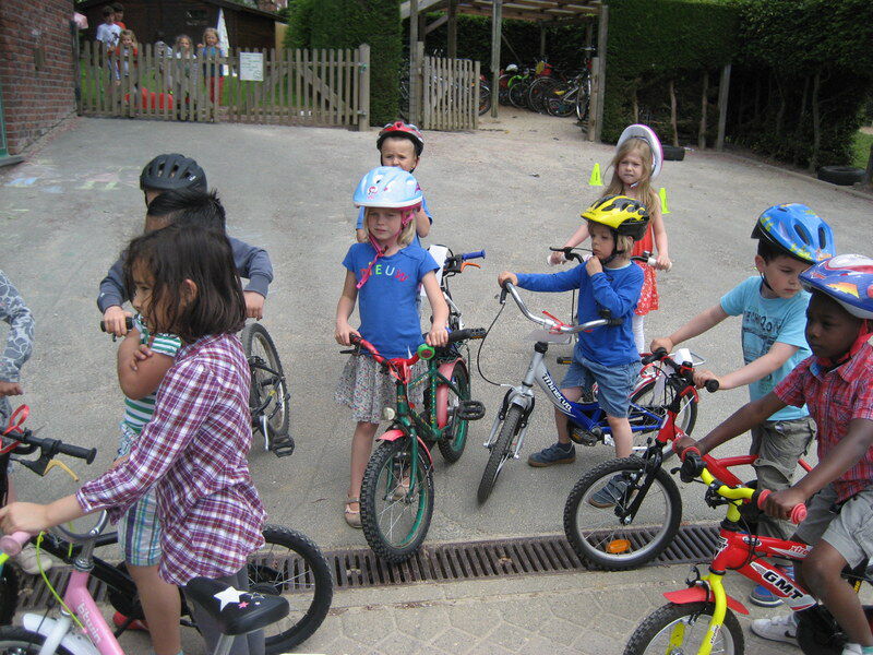 Iedereen bracht zijn fiets mee naar school en juf Marleen maakte