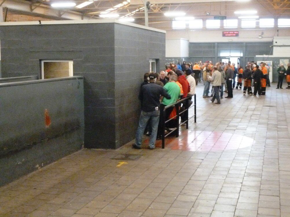 Je ziet de havenarbeiders binnenstromen voor de middagshift. Niet erg veel volk en dat is begrijpelijk want de tijd dat men meer werk dan arbeiders had, ligt al enige tijd achter ons. Als er in de jaren zestig, zeventig, nog werk was voor meer dan 12000 arbeiders is dat nu teruggevallen tot een kleine zesduizend. De arbeiders worden opgeroepen door een foreman die zelf besliste wie hij mee stuurt naar welke werf. Daarbij wordt rekening gehouden met de vaardigheden van de dokwerker.