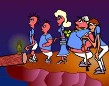 Een familie moet de brug over. Het is nacht, dus moeten ze een lamp gebruiken. De brug kan maximum 2 personen dragen. Elke persoon steekt de brug over in een verschillend tempo! Dat varieert van 1 seconde tot 8 seconden. Ieder duo stapt aan de snelheid van de traagste persoon. De lamp brandt nog 30 seconden. Tracht de hele familie binnen die aan de overkant te krijgen,
