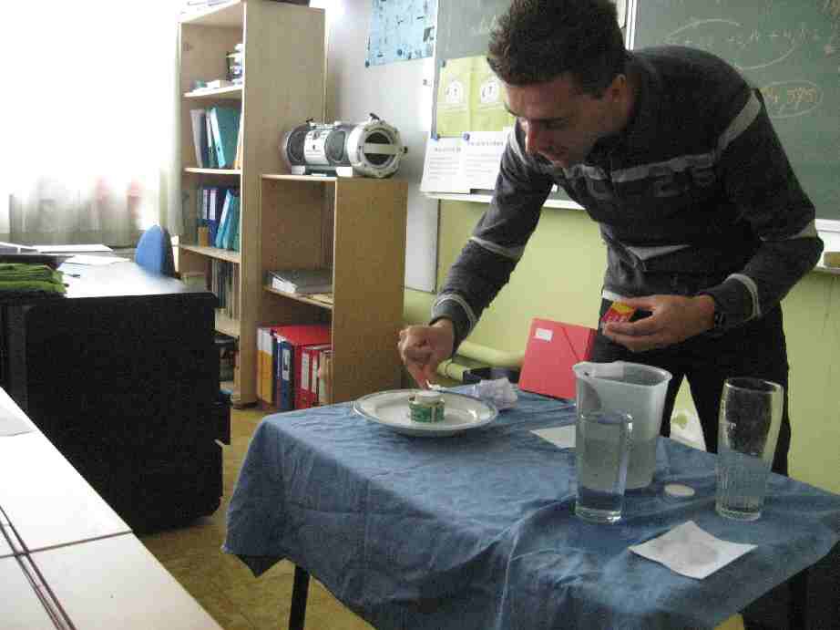 Het startschot is gegeven. 6B zal experimenteren. Onze meester gaf reeds het goede voorbeeld door een korte spreekbeurt te geven over lucht. De opdrachten van koning Karel (Charlemagne) aan de wijze tovenaar waren nochtans niet van de poes. Zo moest hij een blad papier onderdompelen in water zonder dat het nat werd. Vervolgens moest de tovenaar een glas, gevuld met water, omdraaien zonder dat er water gemorst werd. Tenslotte kreeg 'de wijze' de opdracht water te laten stijgen in een glas. Onmogelijk ... en toch ... dankzij de wetenschap kon de tovenaar alles tot een goed einde brengen. Nu is het aan ons!!! In oktober zullen we allen verbazen met onze kennis . En als apotheose, na de herfstvakantie ... zullen we Technopolis onveilig maken.