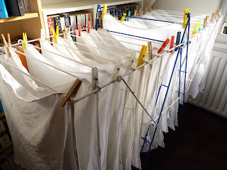 Mijn was is droog. heb de hele dag gewassen, kleding buiten op gehangen. Nu is dus alles drook. Een heel karwei. Lieve groetjes Annie