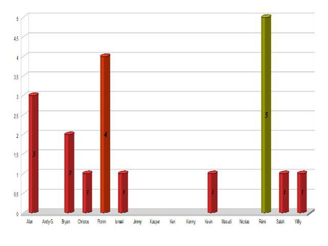 vooraan / devant (l nar r) : Fabio, Ismaïl, Florim, Jimmy, Salah, Andy