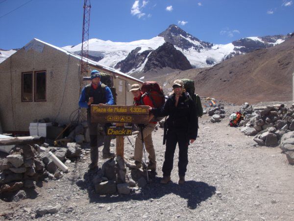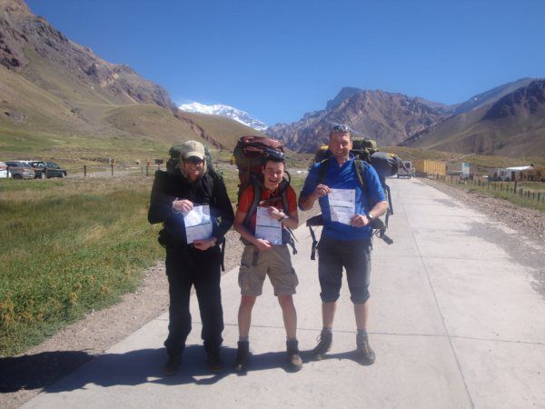 op de vorige foto zie je Vientje, David en Johan aan de begin van het nationaal park met hun permit. De top ligt achteraan in de sneeuw... al nog wat foto's erop zetten...