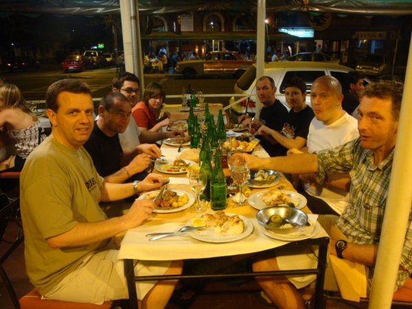 foto 2 heel het team aan de Argentijnse steak, behalve de vegetarische Liesbeth