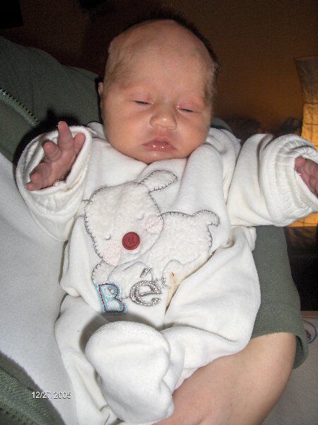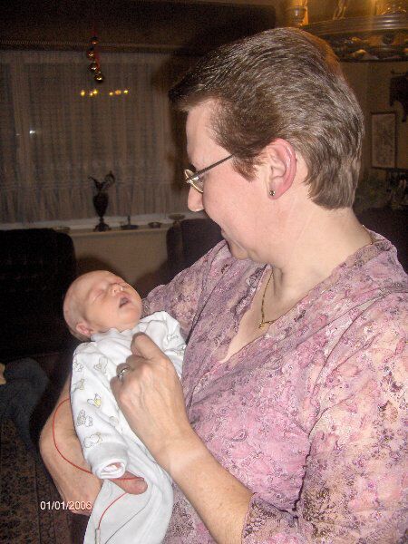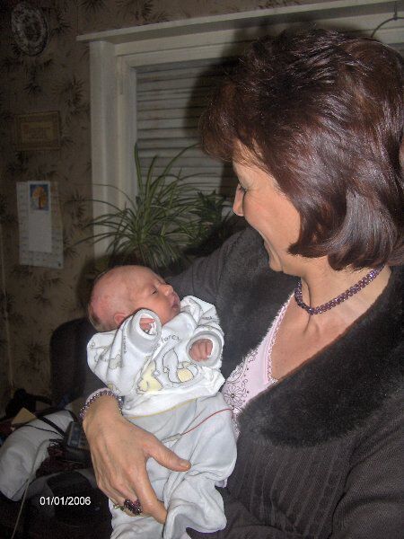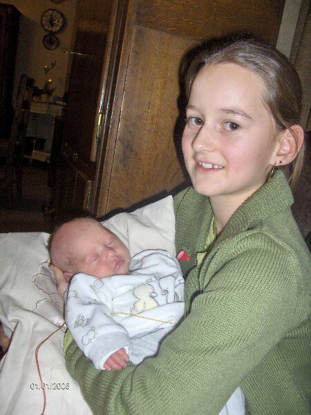 Gisteren was het nieuwjaar en jij was er ook! Vele mensen hebben je vastgenomen maar het was dan ook bij de meesten hun eerste keer! Je Peter, je overgrootmoeder, Tante Charlotte, Nonkel Niels, Opa Stefaan, Tante Carine, Tante Hilde. Maar je was de hele tijd braaf hoor! Ik heb een mooi kadootje gekregen van jou en je Peter ook, dank je hoor. Ik heb je er een kus voor gegeven maar dat zal je al niet meer weten he! Ik zie je binnenkort wel weer eens terug!