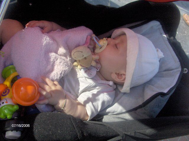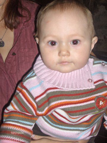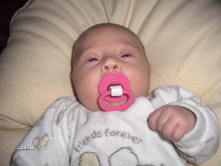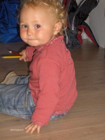 Vandaag en eergisteren ben je bij mij geweest! Je was heel braaf hoor! Dinsdag heb je veel geslapen want je moest wat vroeger opstaan omdat je mama al vroeg weg moest . Je was een half uurtje bij mij en je lag al te slapen. Daarna hebben we flink gespeeld. Ik had nog een teletubie liggen van vroeger die kan praten, je vond dat heel grappig! En je hebt ook eindelijk mémé gezegd! Na lang oefenen! Ik vond het wel leuk om dat te horen!! Vandaag zijn we naar tstad geweest en ik moest ook even langs mijn school, daar ben je ook heel braaf geweest! En iedereen vond je schattig!! Dat ben je ook he