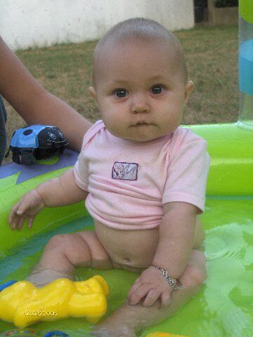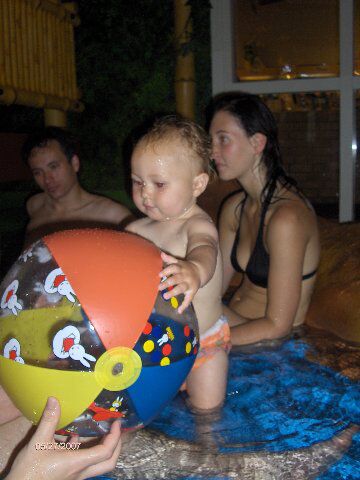 Vandaag zijn je mama & papa, nonkel korneel en ik met jou gaan zwemmen. Je vond het heel leuk! Jij bent echt gek op water. We hebben met de bal gespeeld en op de glijbanen gezeten. Iedereen vond het plezant! Je mama en papa hebben je ook zwembandjes gekocht. Eerst vond je dat niet zo leuk maar daarna vond je het niet erg meer. Ze zijn wel nog een beetje groot aan je armpjes maar je zal er snel ingroeien. Je wordt veel te snel groot!