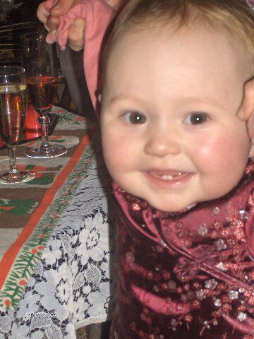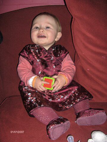 Wij hebben gisteren oudejaarsavond samen gevierd. Je nonkel Korneel en ik, je mama en papa en Steven. Je had je mooie kleedje aan met je bijpassende schoentjes, je was heel mooi! Je hebt ook een beetje van de aperitiefhapjes meegesmuld, jij eet echt alles! Je bent natuurlijk niet opgebleven tot 00u he maar dat komt nog wel! Vandaag was je ook bij oma zoals de rest van de familie. Je kreeg weer aandacht van alle kanten. Maar je bent heel braaf geweest hoor, je lacht naar iedereen. Alleen mag niet iedereen je pakken maar ja er was ook heel veel volk he. En binnenkort gaan we samen gaan skiën, dat zal ook weer leuk zijn. Je zal de sneeuw waarschijnlijk wel raar vinden maar het zal wel wennen. Ik kijk er al naar uit!