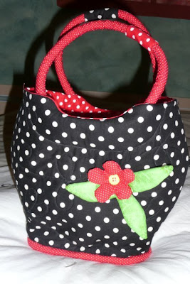 Emmy heeft het tasje gemaakt tijdens een workshop bij Duffy en vertelt dat het niet altijd even simpel was om te doen, maar dat Duffy het helemaal, met veel geduld, goed uitlegt.