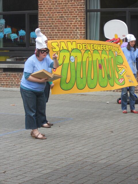 Vrijdag kwamen de smurfen naar school om ons voor te stellen aan hun vriend Sam de verkeersslang.