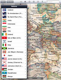 je kunt locaties zoeken en bookmarken. Via de knop Nations krijg je informatie