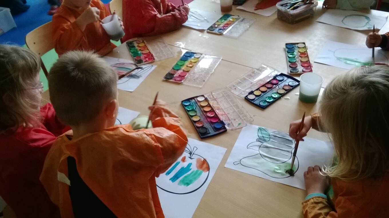 Muz: beeld: techniek: scheuren, kleven en knippen : "visjes voor ons reuze aquarium".
