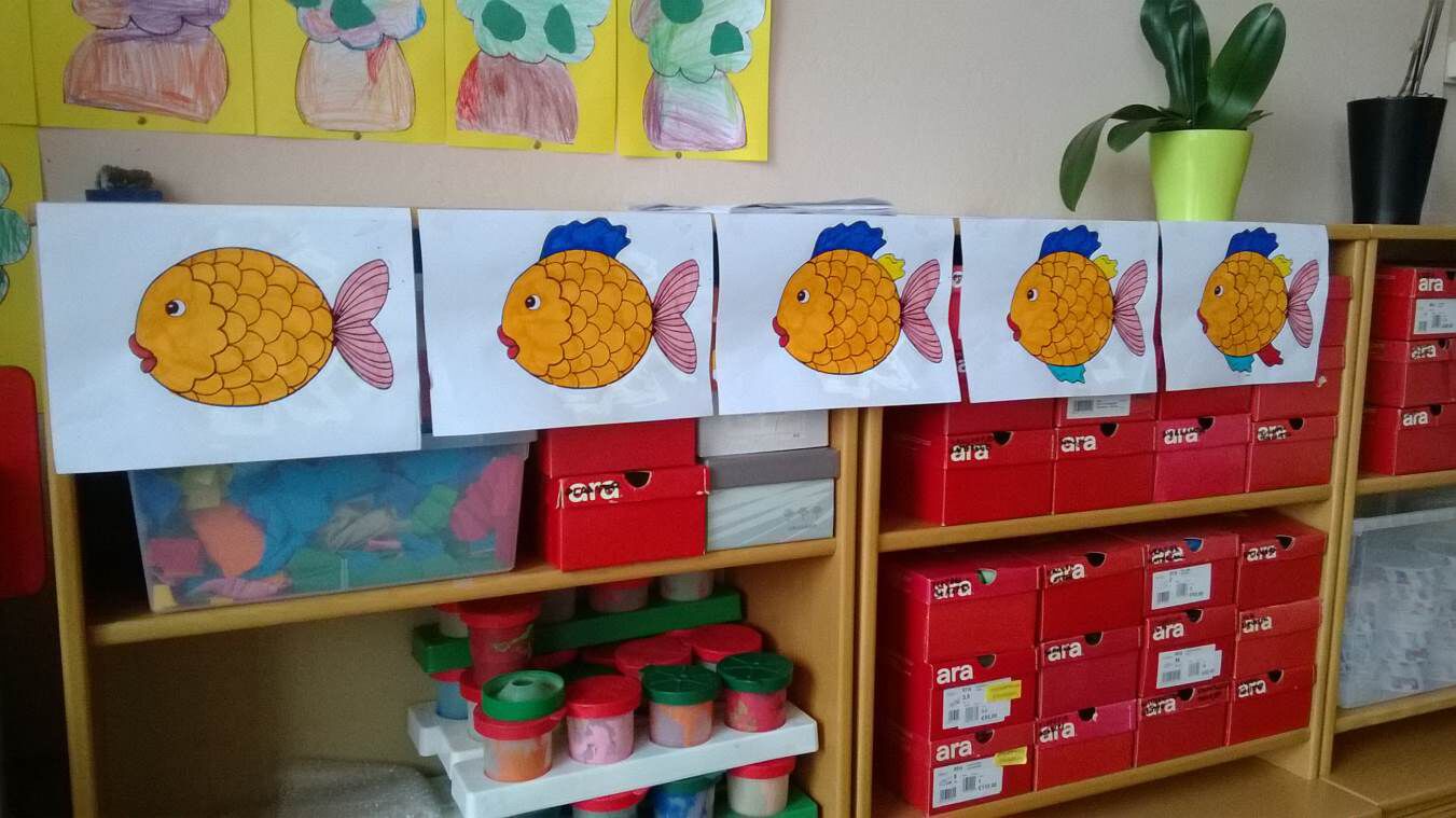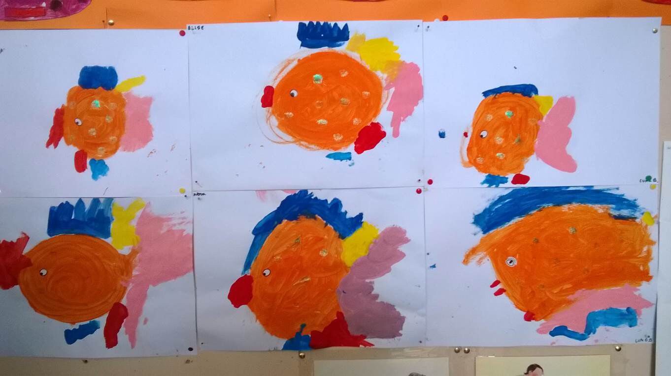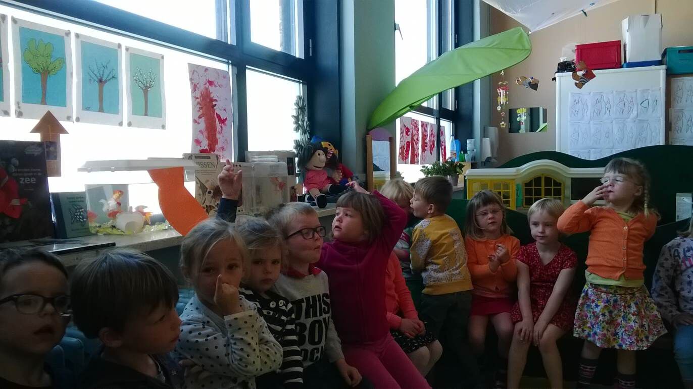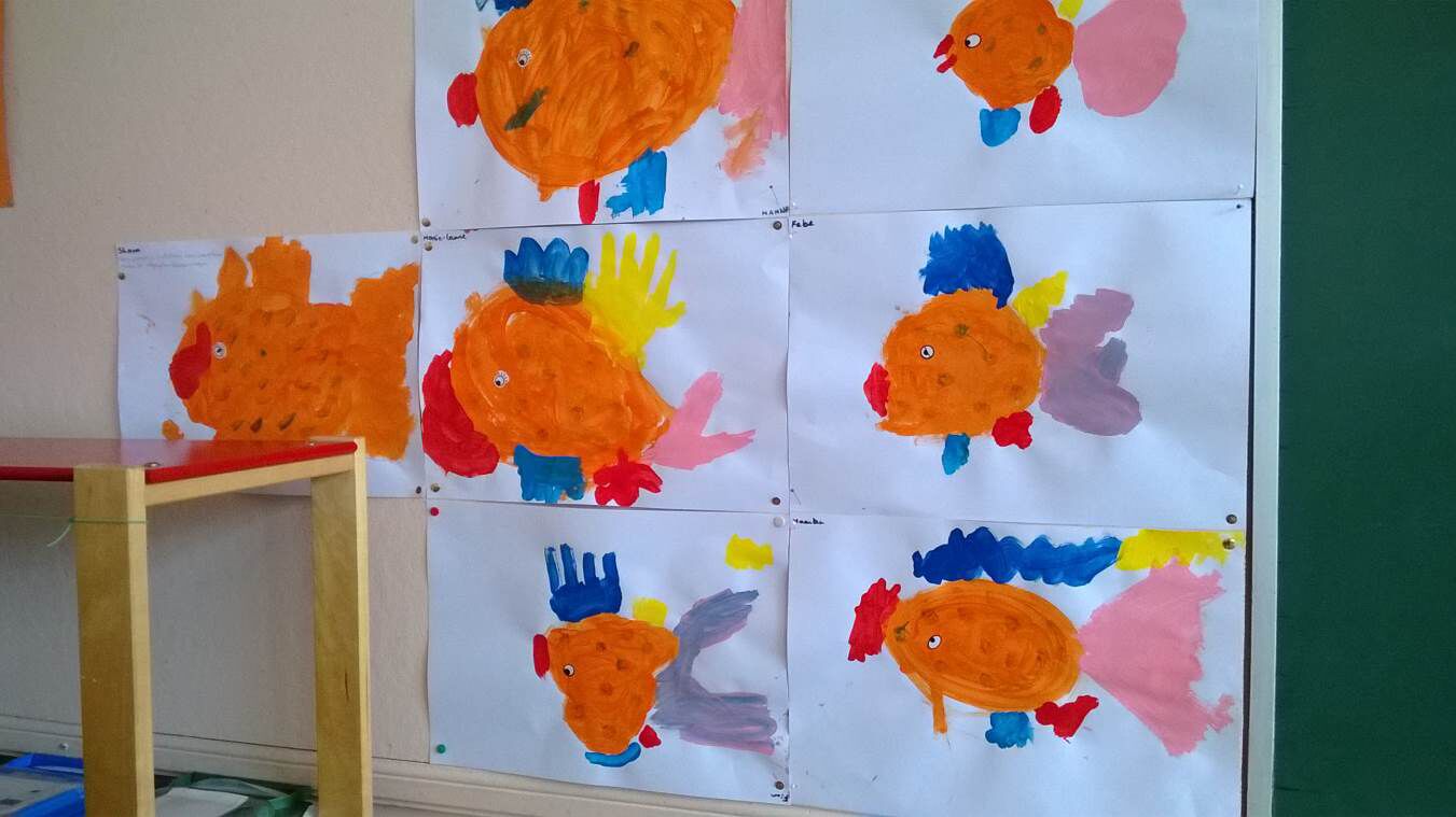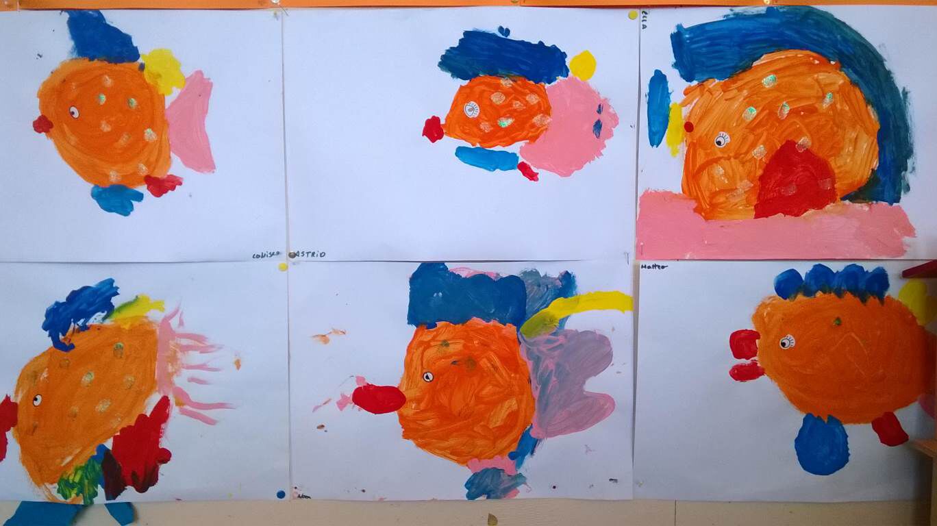 LO: tussendoortje: " waar is vis ? " kringspelletje : de kleuters geven de vis achter de rug door en de kleuter in het midden moet raden waar de vis is.