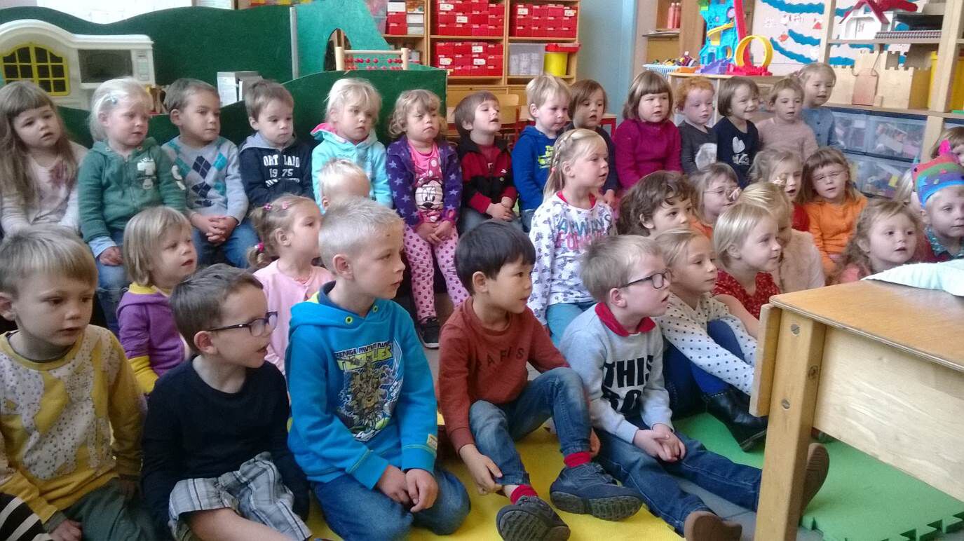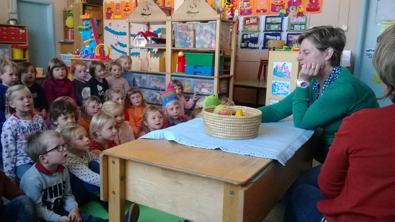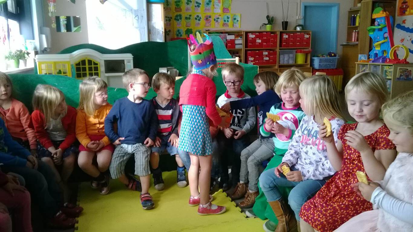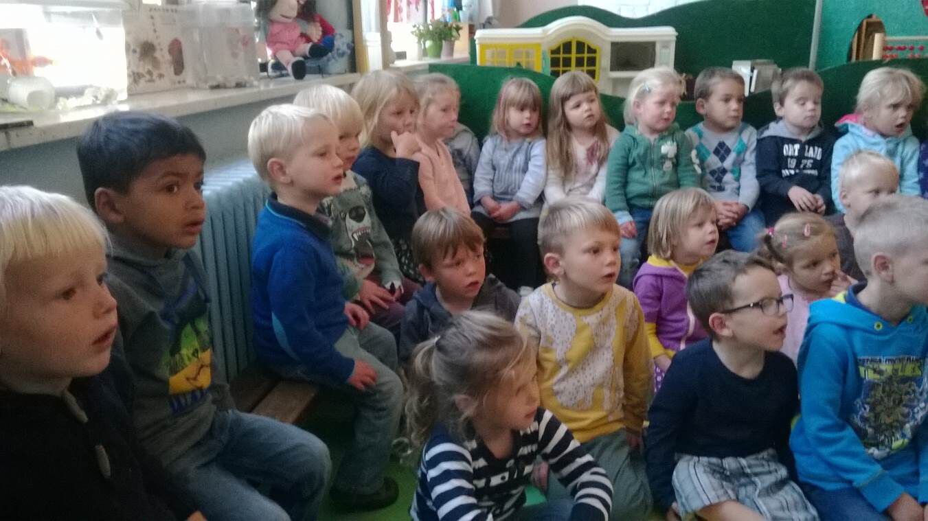 LO: tussendoortje: " waar is vis ? " kringspelletje : de kleuters geven de vis achter de rug door en de kleuter in het midden moet raden waar de vis is.