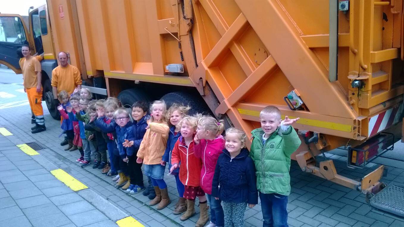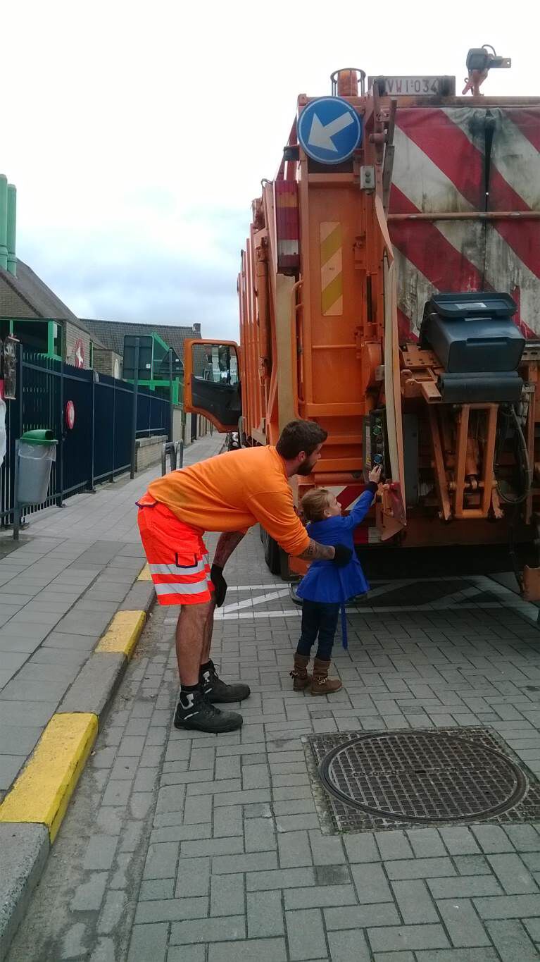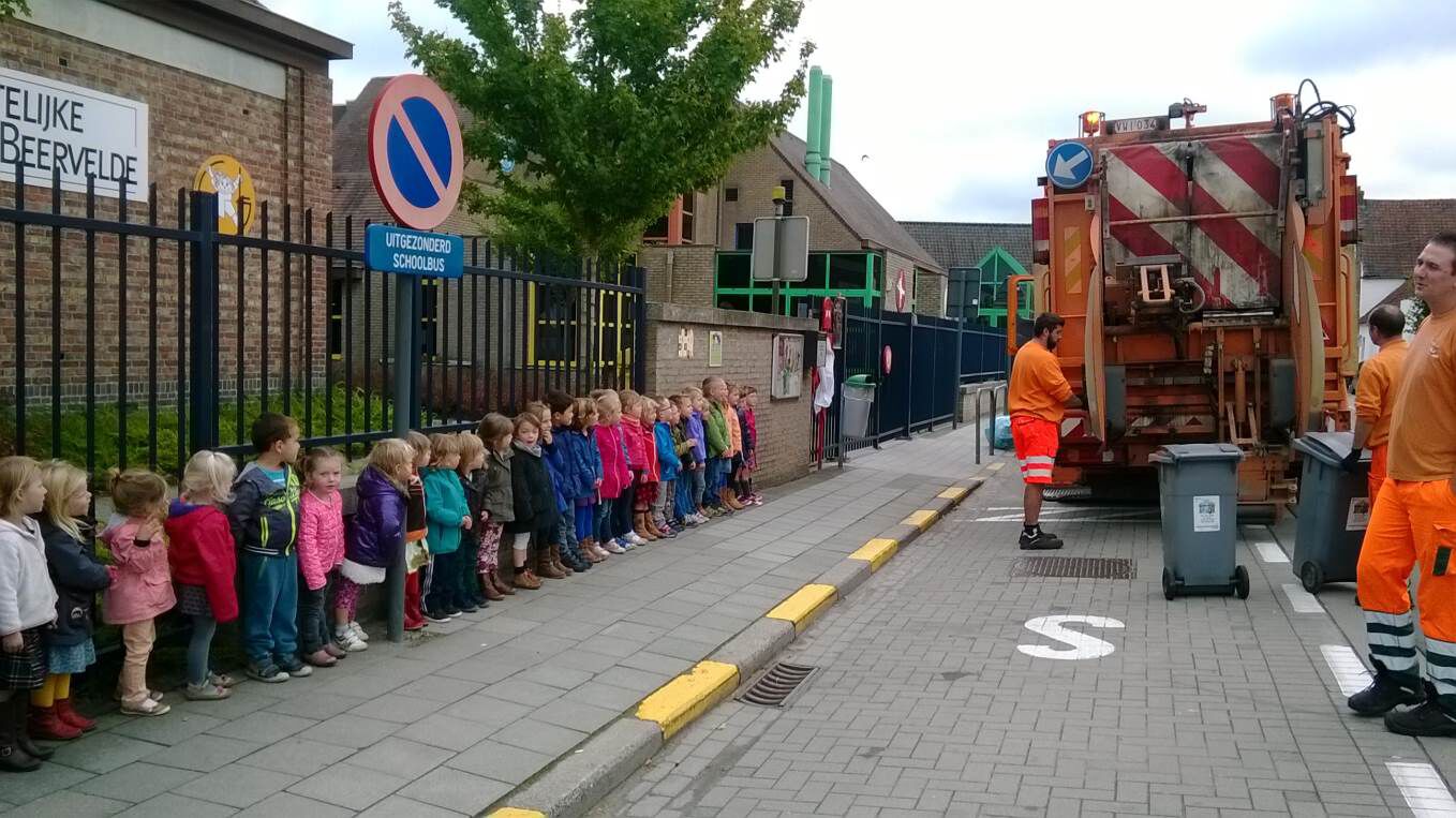 WO: waarneming vuilniswagen: vandaag kregen we bezoek van de vuilniskar en zijn werknemers van idm. In het kader van MOS op school. "Milieu op school"we werkten rond sorteren : de vuilbakjes herkennen en juist gebruiken, We vertelden het verhaal van Floepje het visje dat ziek werd van het vuile water in de beek.