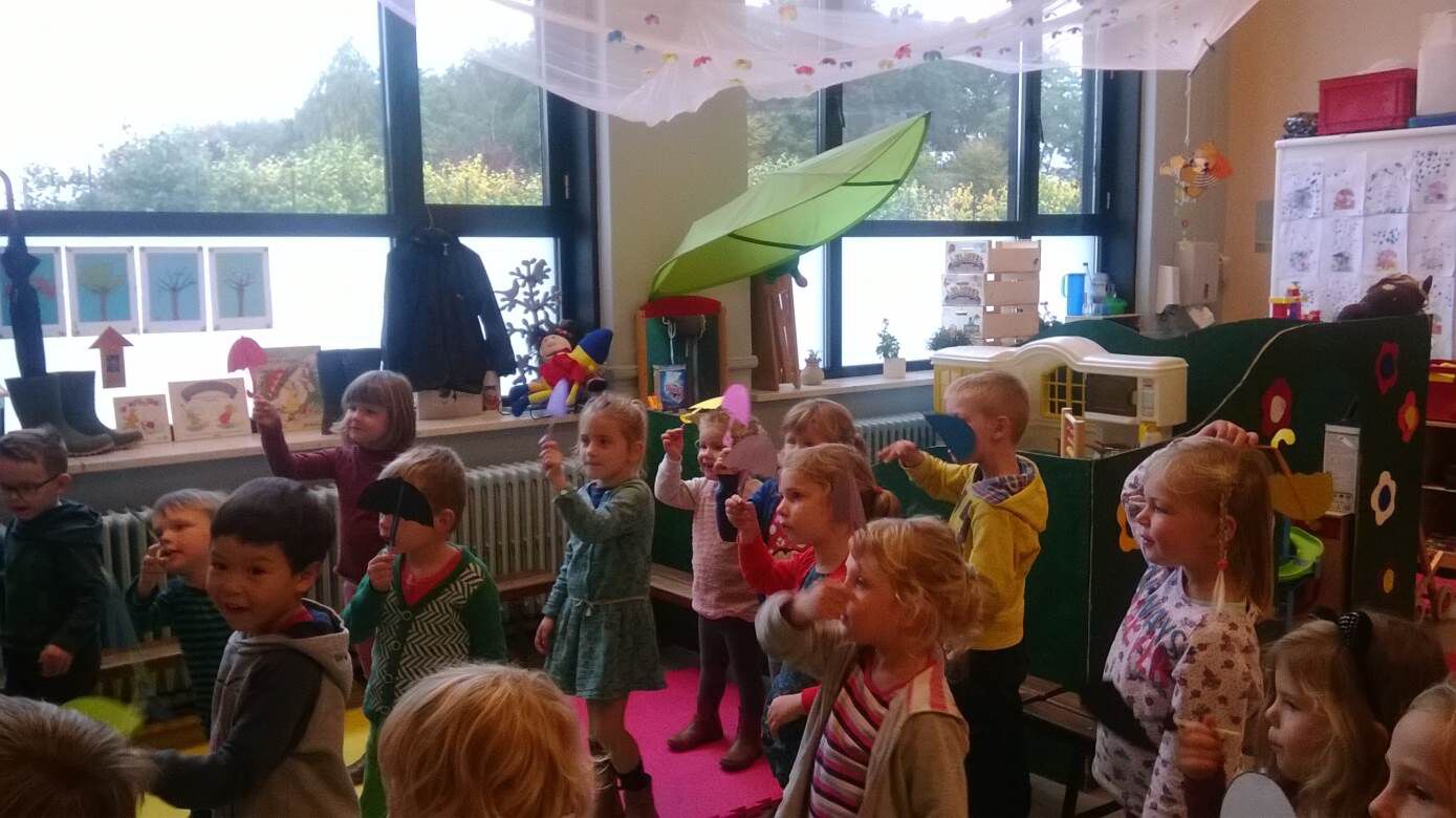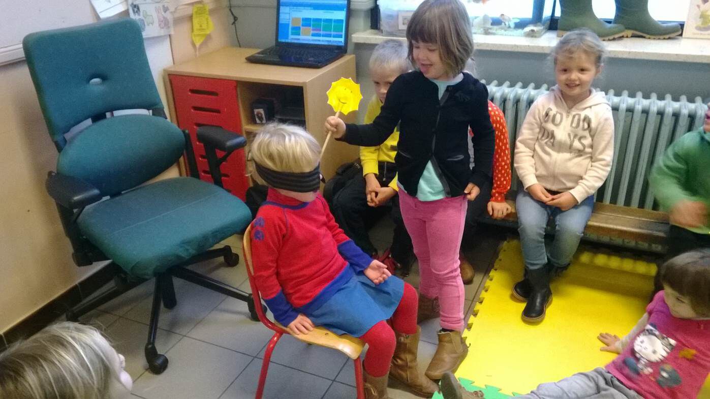 Lo: bew tussendoortje : tik - tik waar tikt ons weerstokje ( regen ) lichaamsdeel benoemen van je voelt.