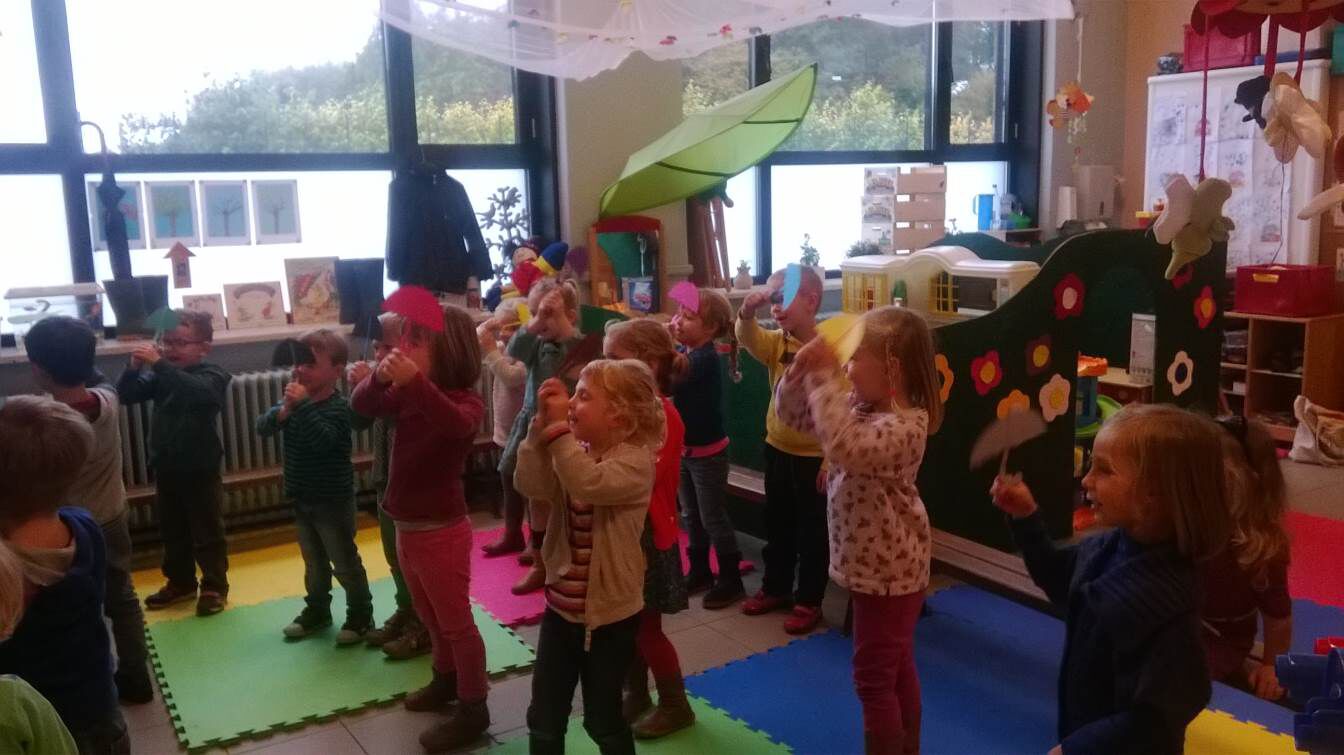 Lo: beweging: vrij dansen met onze paraplu op muziek