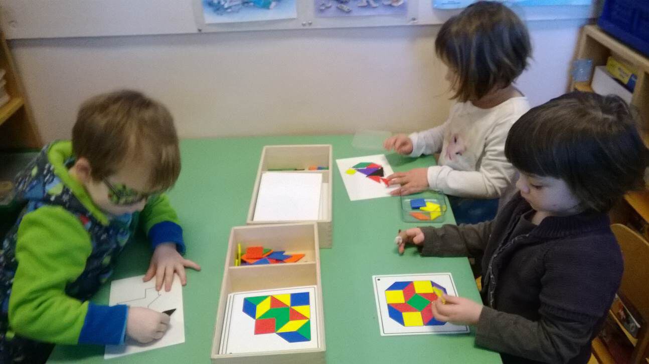 Wisk: vormen na leggen, patronen maken, vrij met vormen spelen .