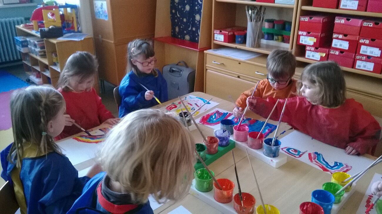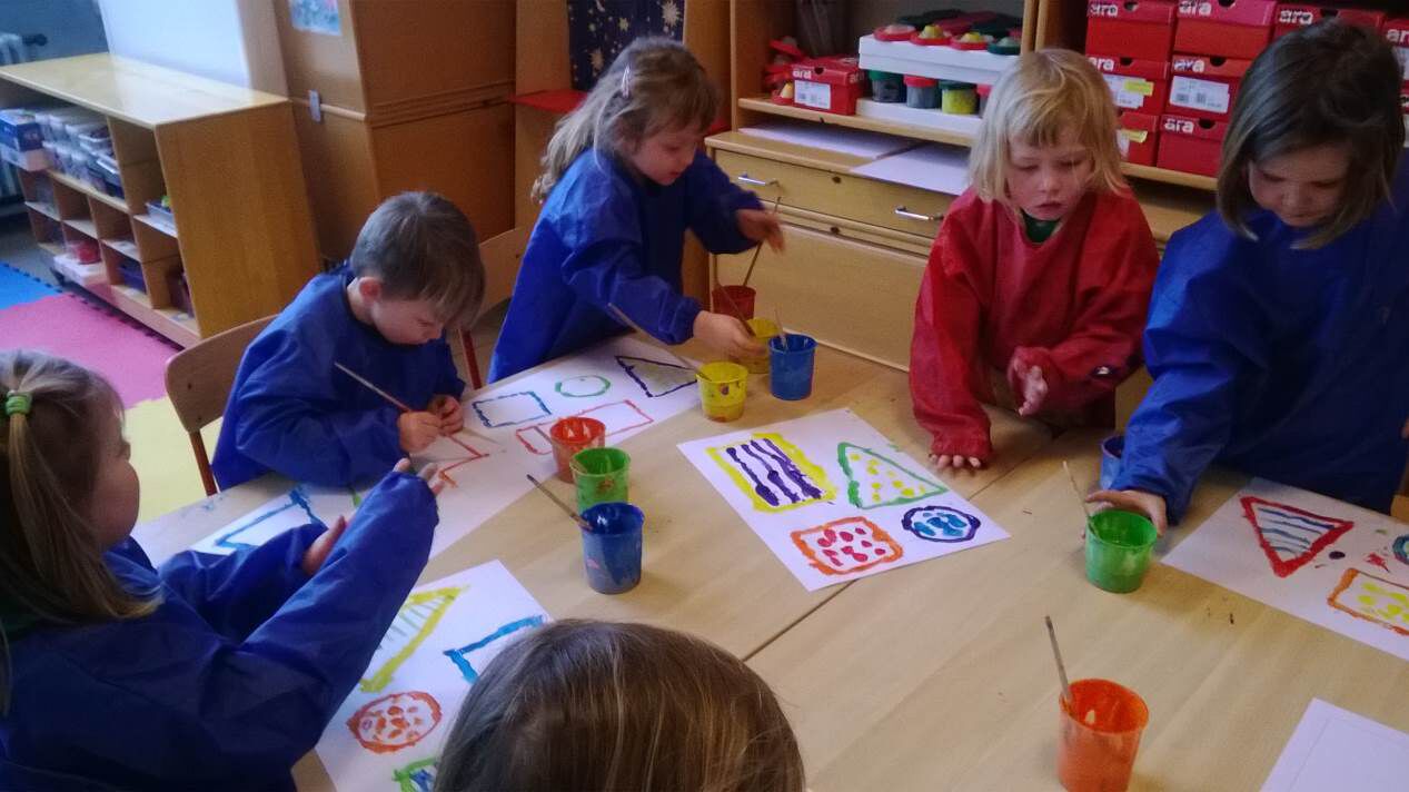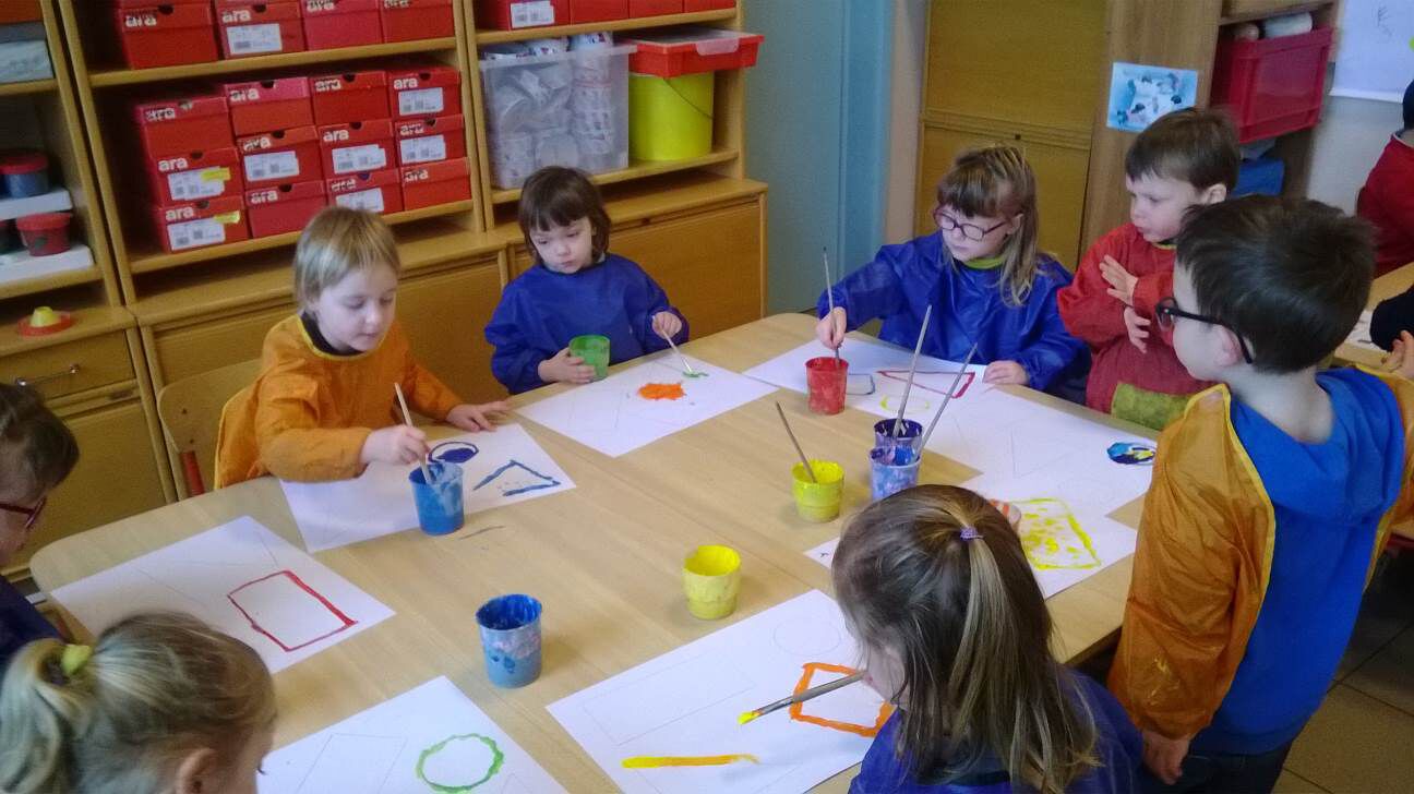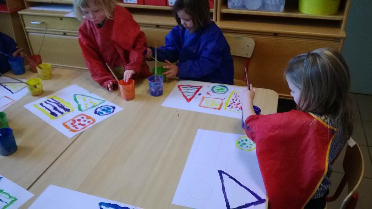 Muz: beeld: vormen schilderen en versieren met dunne penselen.