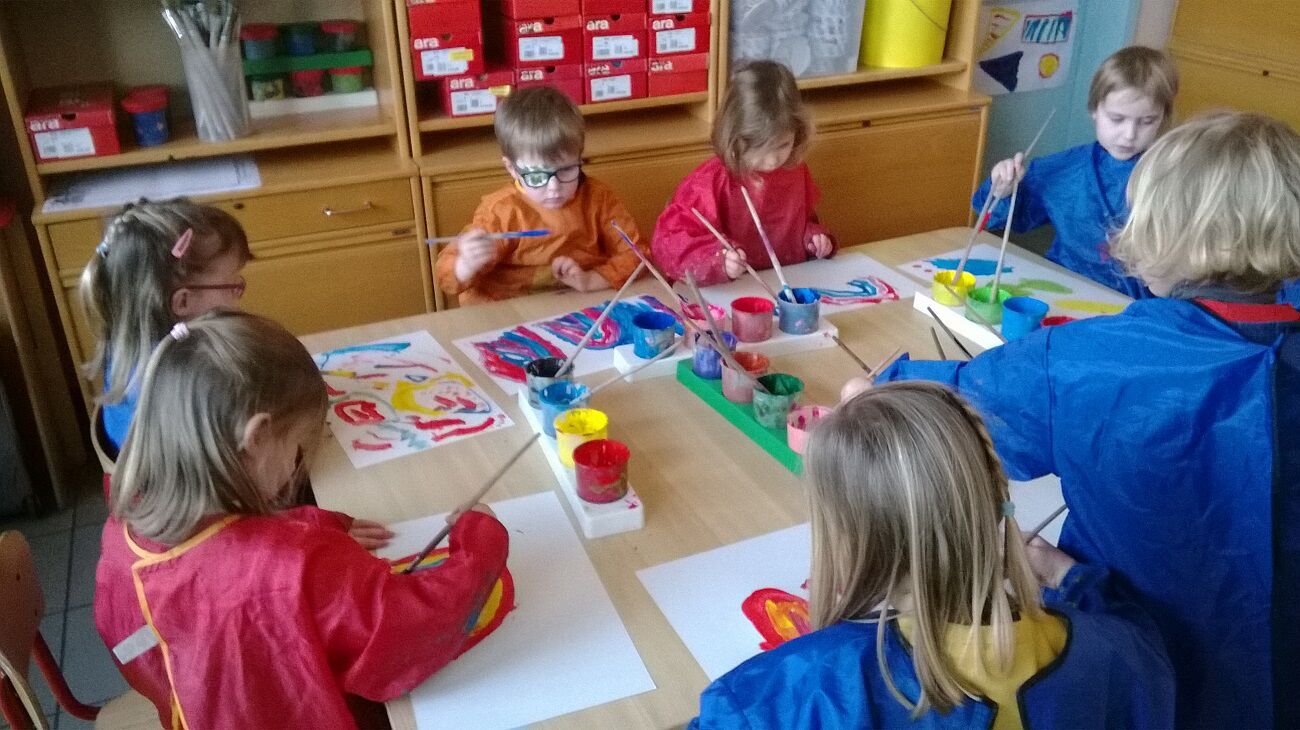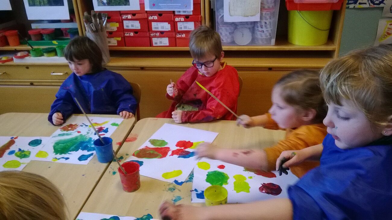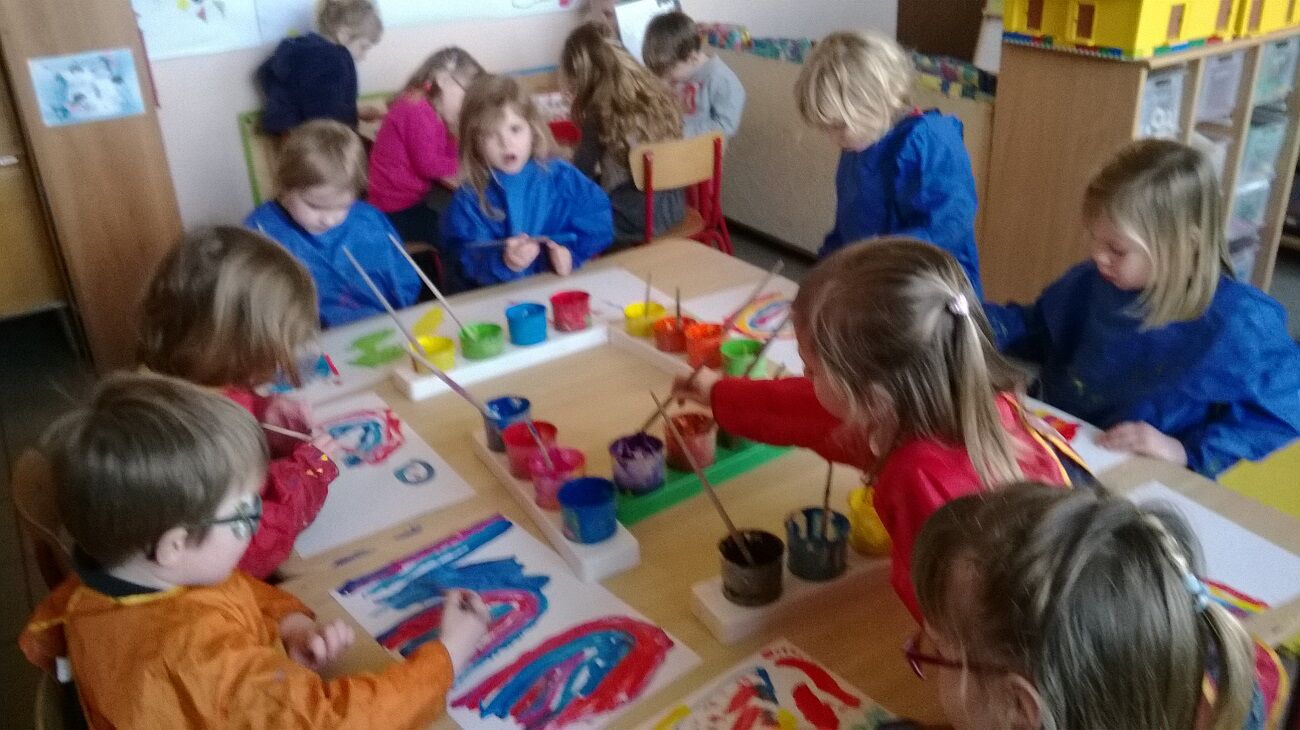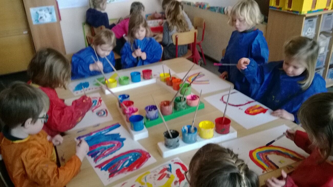 Muz: beeld: " vrij schilderen na het verhaal van de kleurentovenaar"