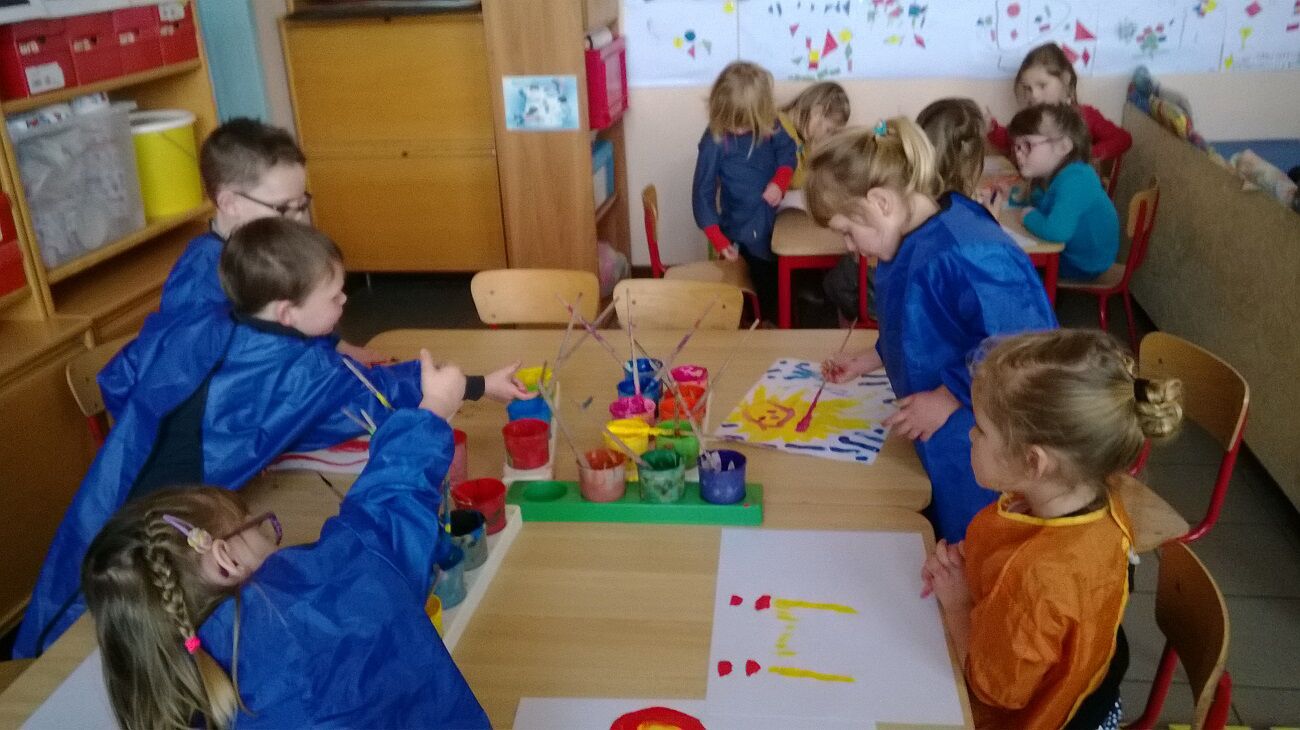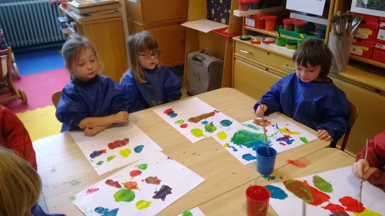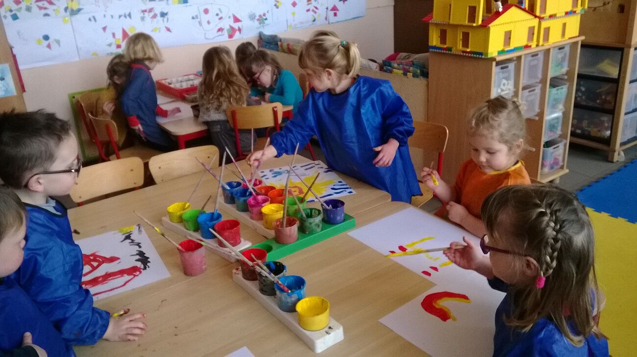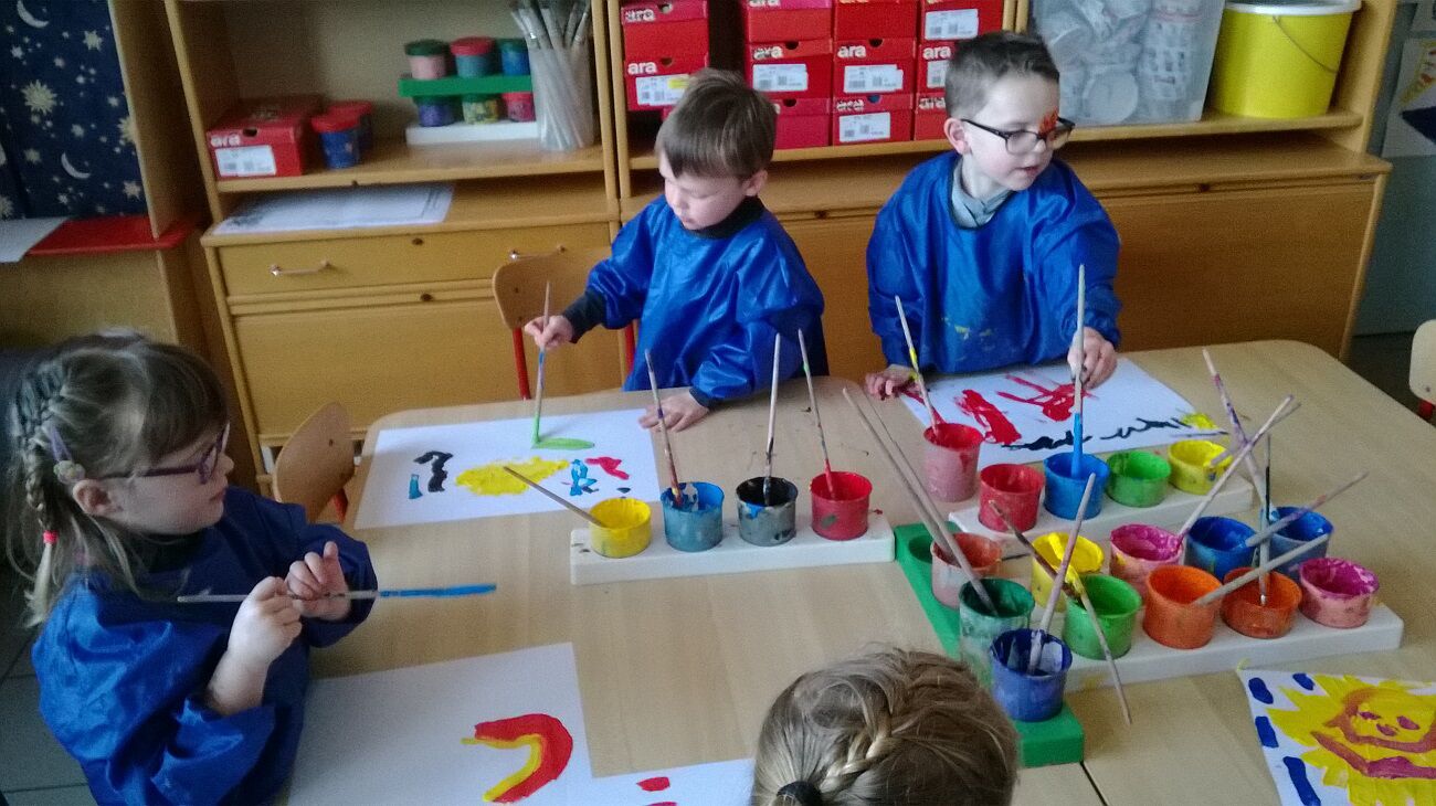 Muz: beeld: " vrij schilderen na het verhaal van de kleurentovenaar"