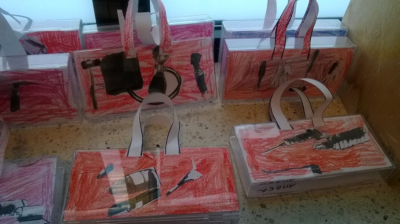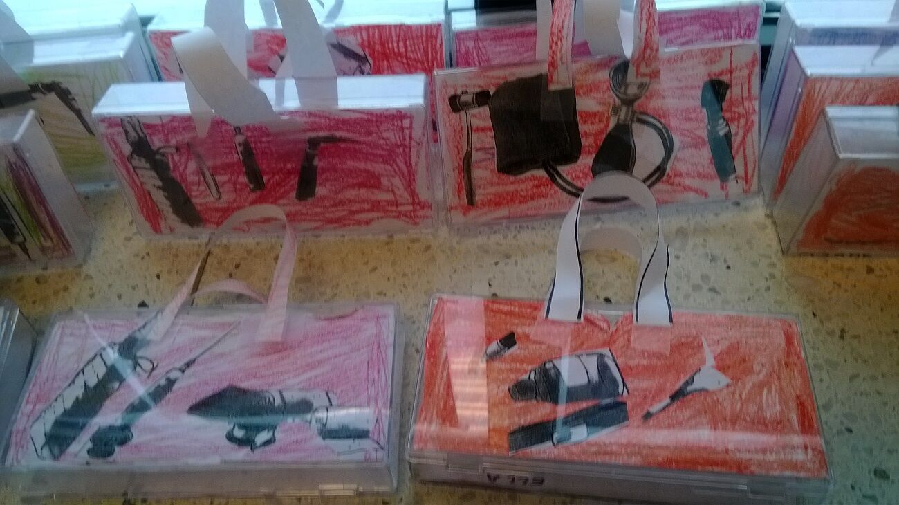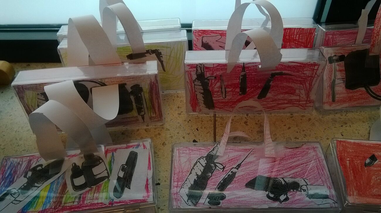Muz: beeld: " dokterstas geknutseld " : (knippen, kleuren, lijmen)