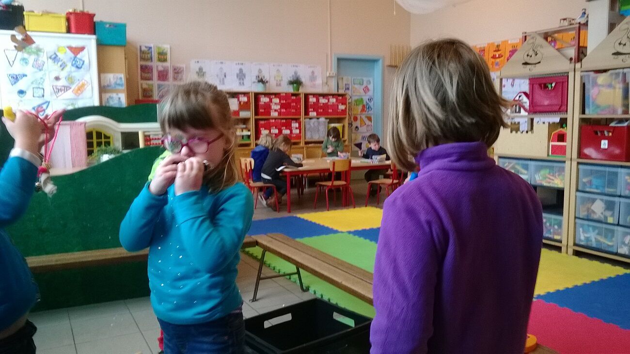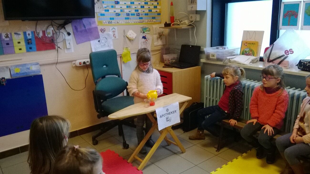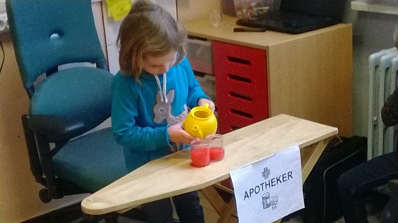 Wisk: meten: meer / minder : " apotheek spelen, siroop gieten ( verfwater ) "
