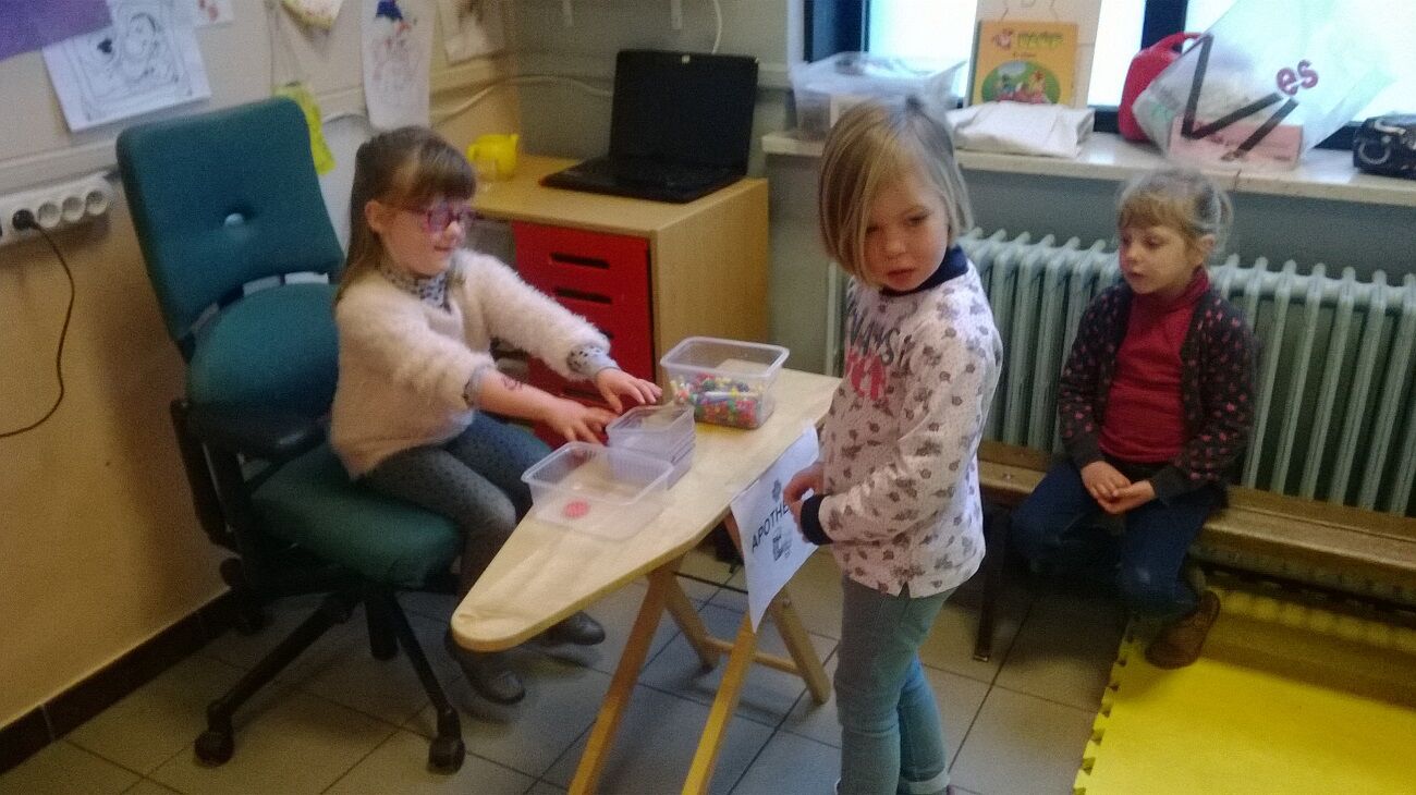 Wisk: Tellen: " apotheek spelen " pilletjes tellen ( pareltjes tellen en betalen )