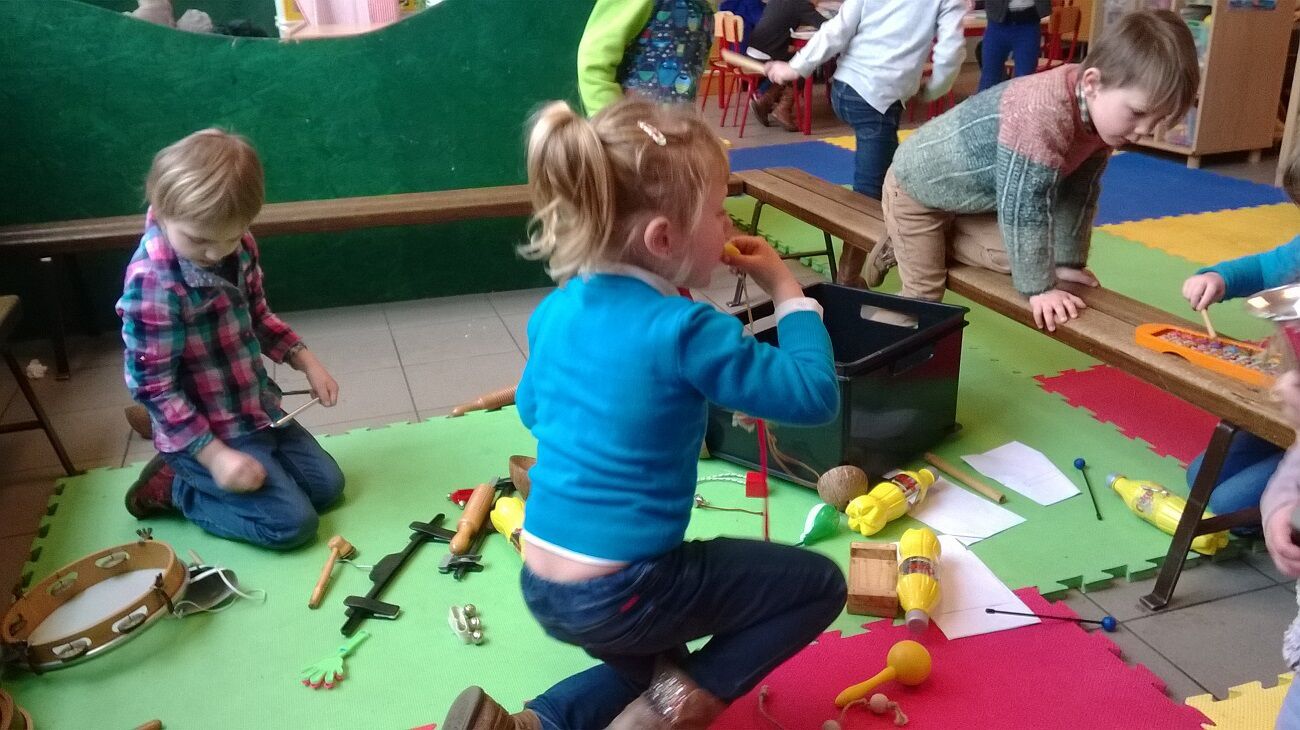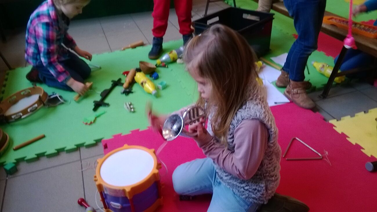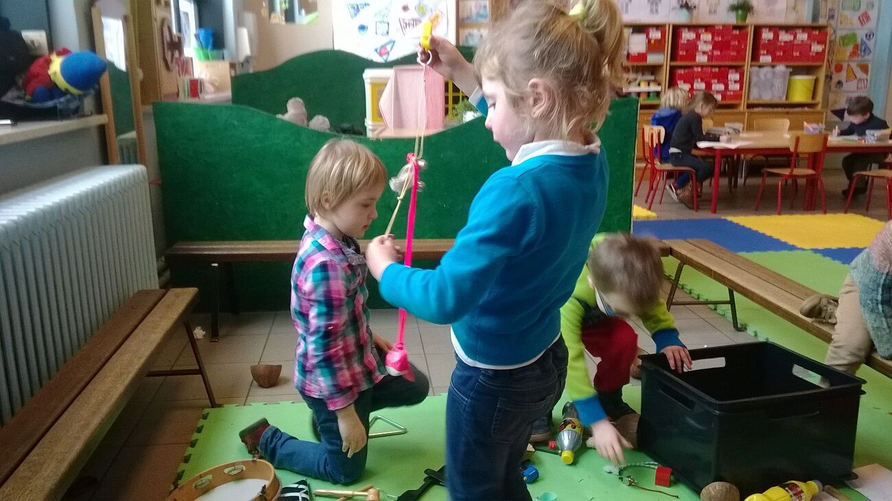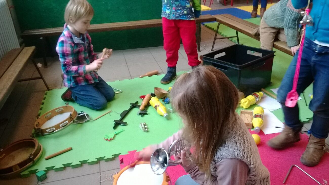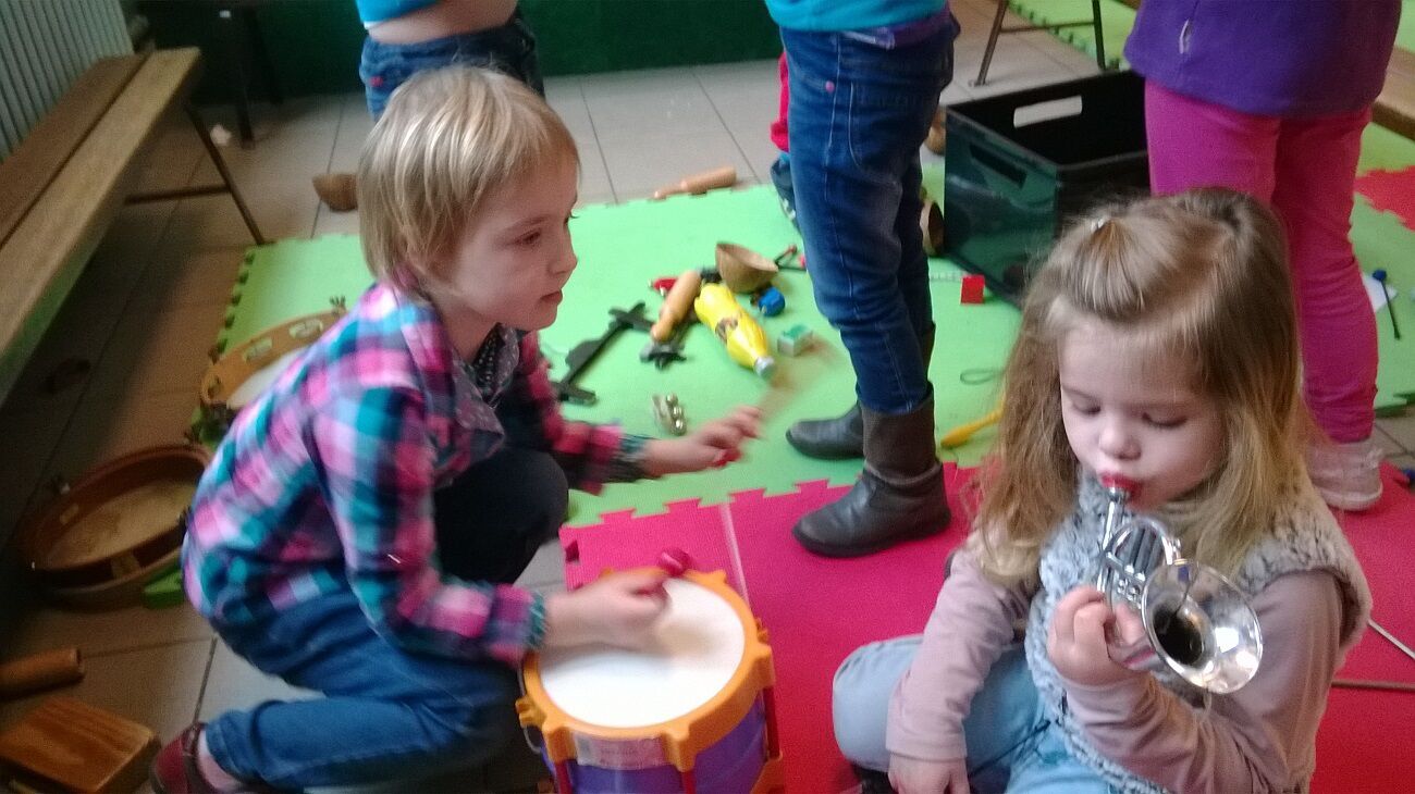 Muz: drama: Poppenkast op vrijdag met juf Kathy : "De dieren spelen een muziekconcert" . ( de kleuters spelen op het einde van het poppenspel het concert eens na )