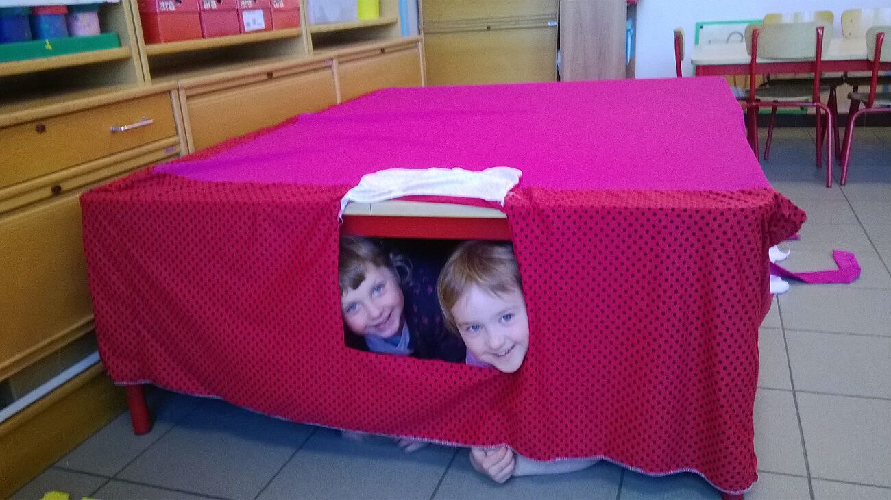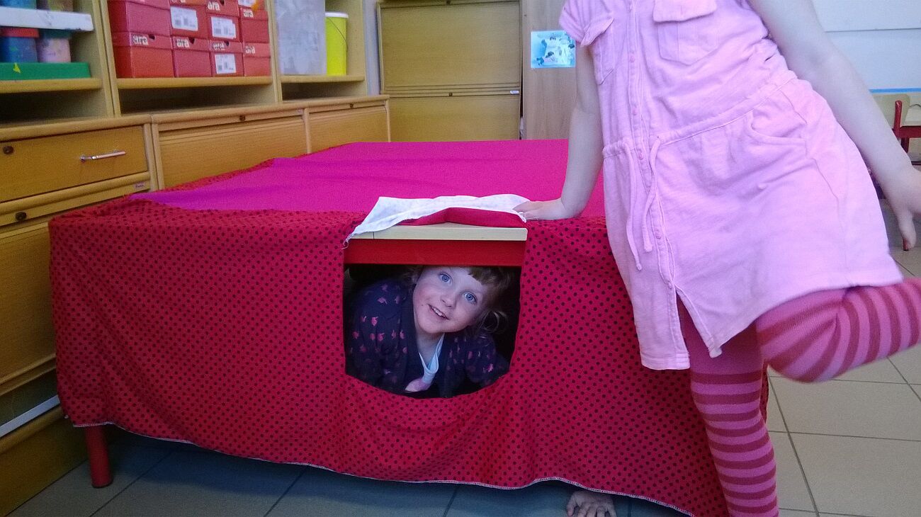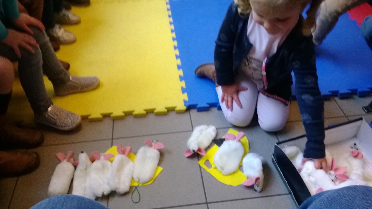 WO: spelen in de hoekjes :  muizen telspel , muisjes vangen , het huis van muis bouwen , het hol van de muizen tafeltent