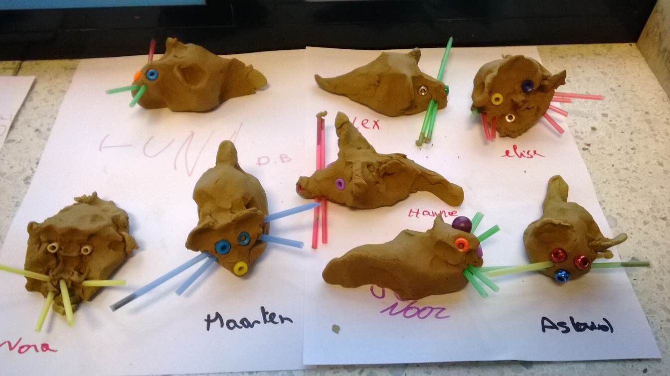Muz: beeld: kleimuizen schilderen die gedroogd zijn