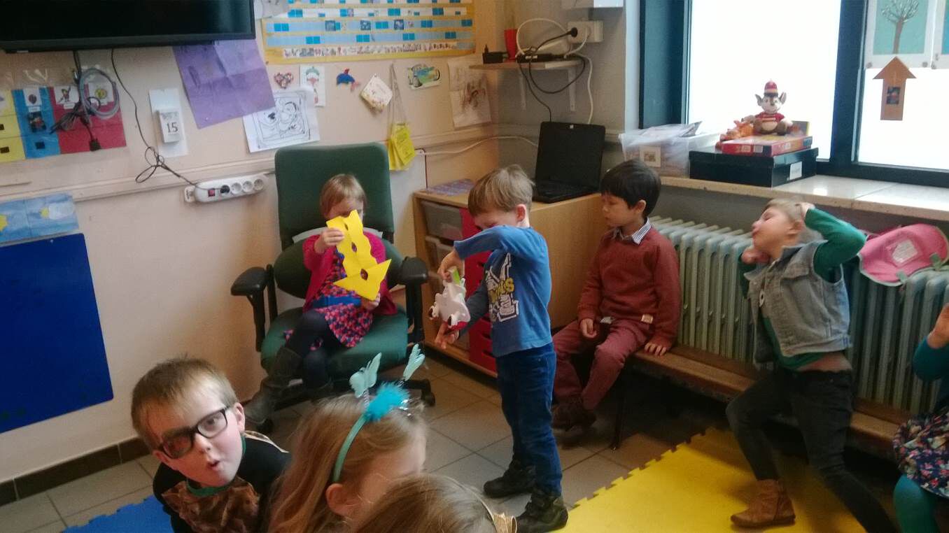 Muz: drama: poppenkast : "de ochtend van Moederdag " met (Thamara stagiaire kleuterleidster )